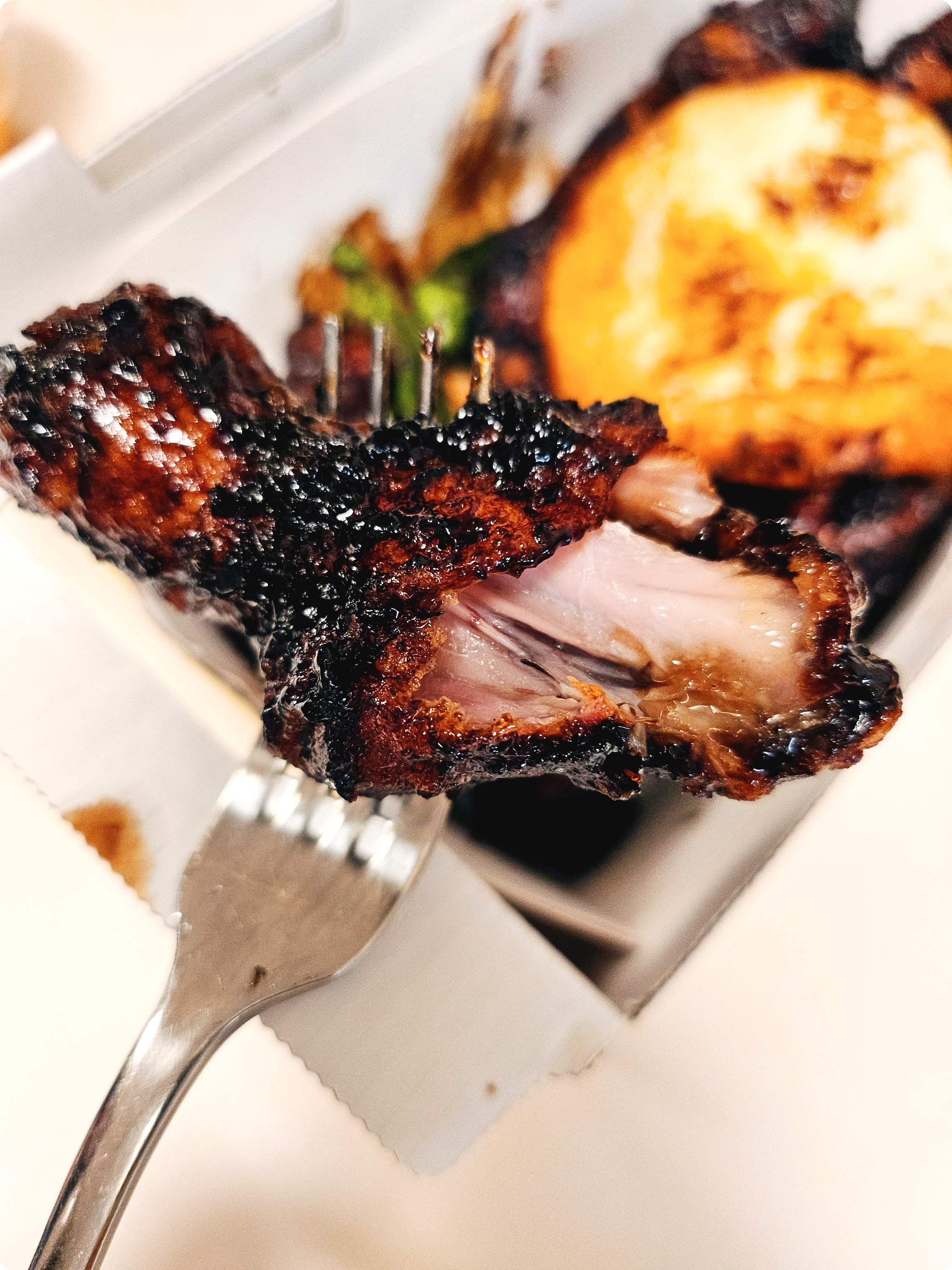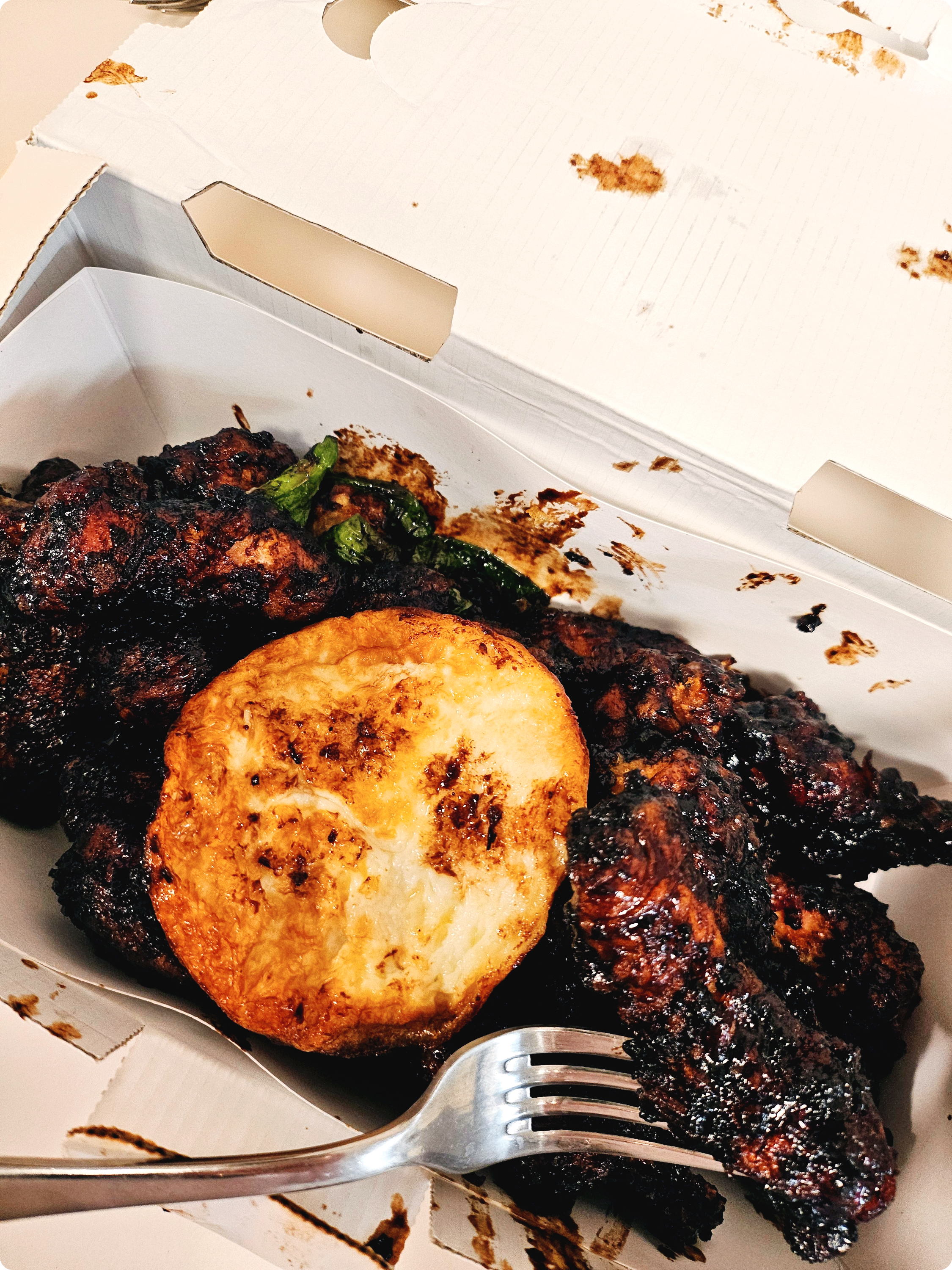 저는 콤보를 주문해서 다리 하나를 포크로 집어 올려 봅니다