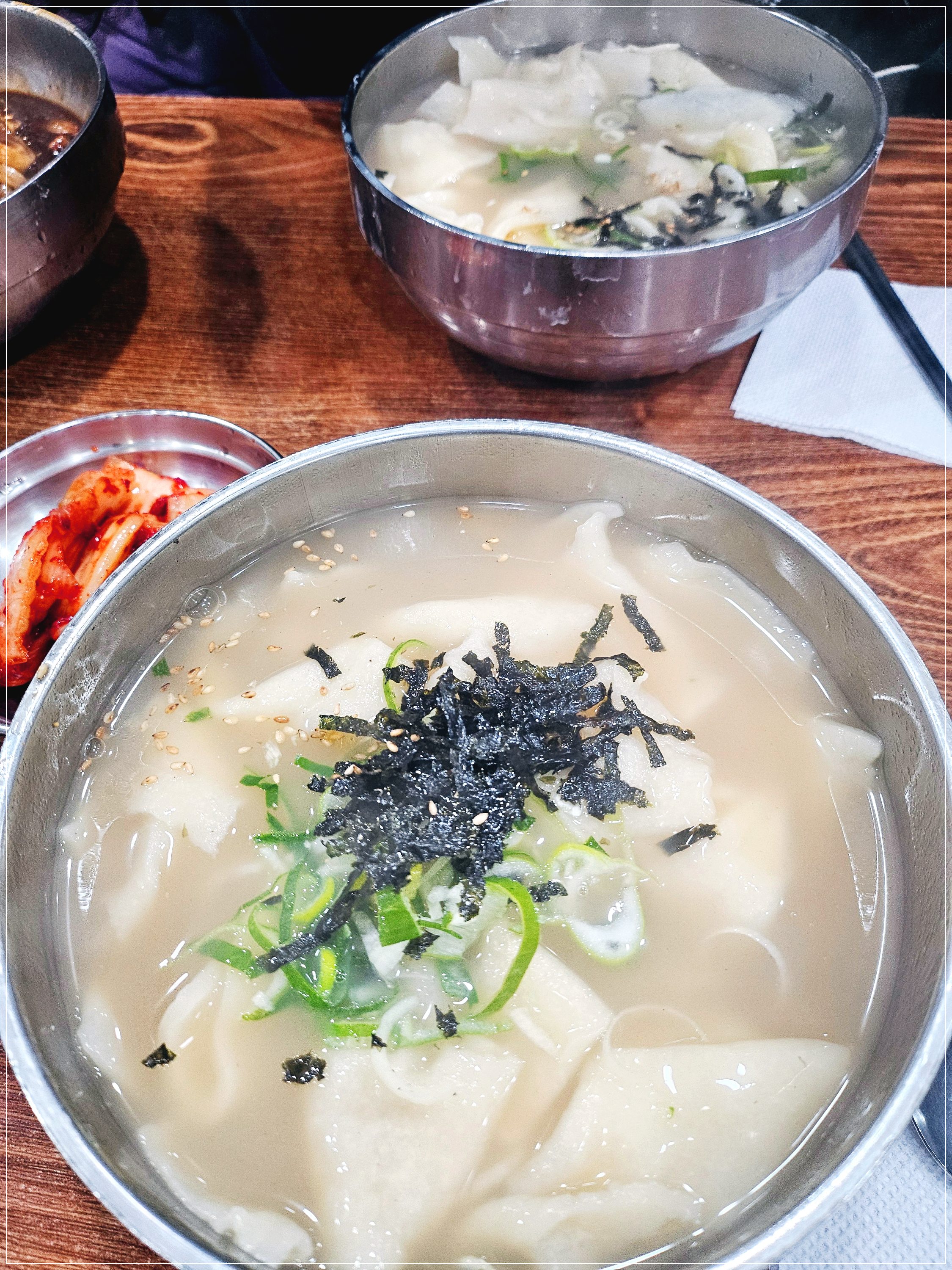심심한듯 보이나 처음엔 멸치국물 맛으로 시원하게 먹다가 테이블 위에 있는 매콤 양념장을 넣어서 먹으면 그것도 맛있습니다