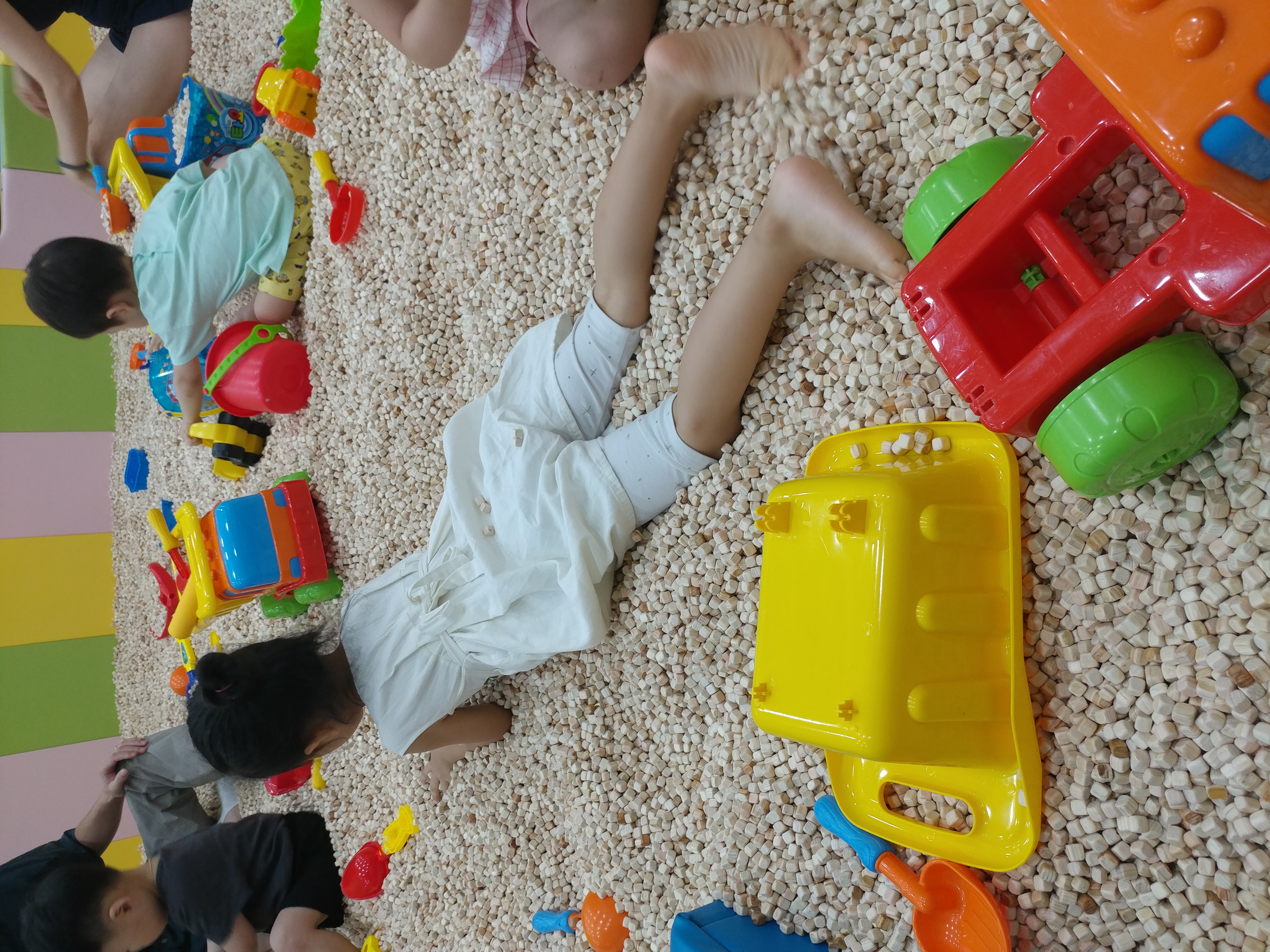 키즈카페에 왔으니 편백나무 풀장에서 자연을 느껴봐야겠죠?