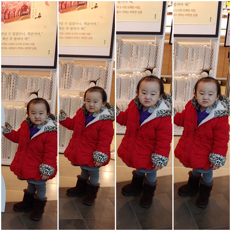 체험을 마치고 옆에 있는 서점 입간판 앞에서 찰칵찰칵 큰공주