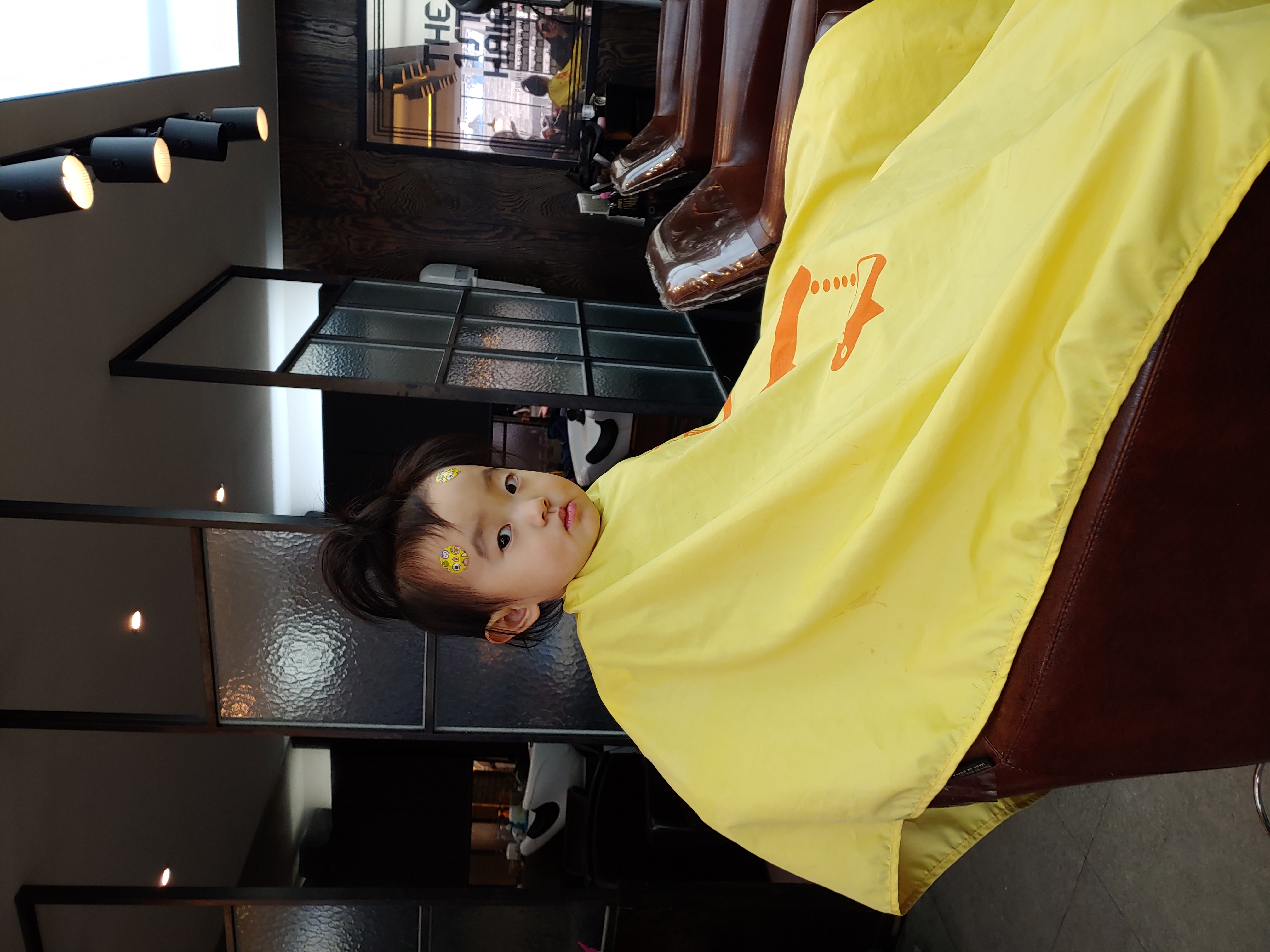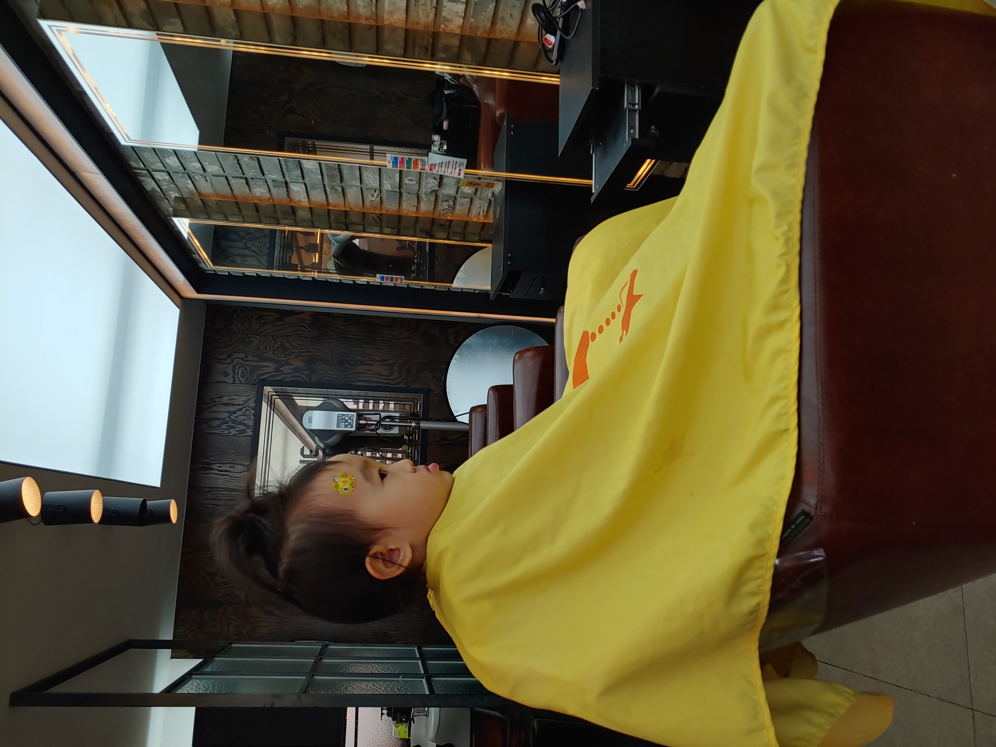 미용실 의자에 앉으니 긴장되는 듯 한 공주님 이군요.