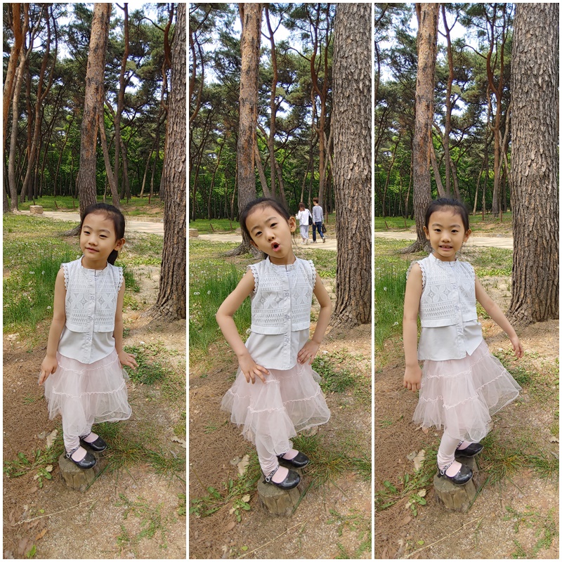 기울기는 했지만 쭉쭉 뻗은 소나무 앞에서 예쁜 큰공주
