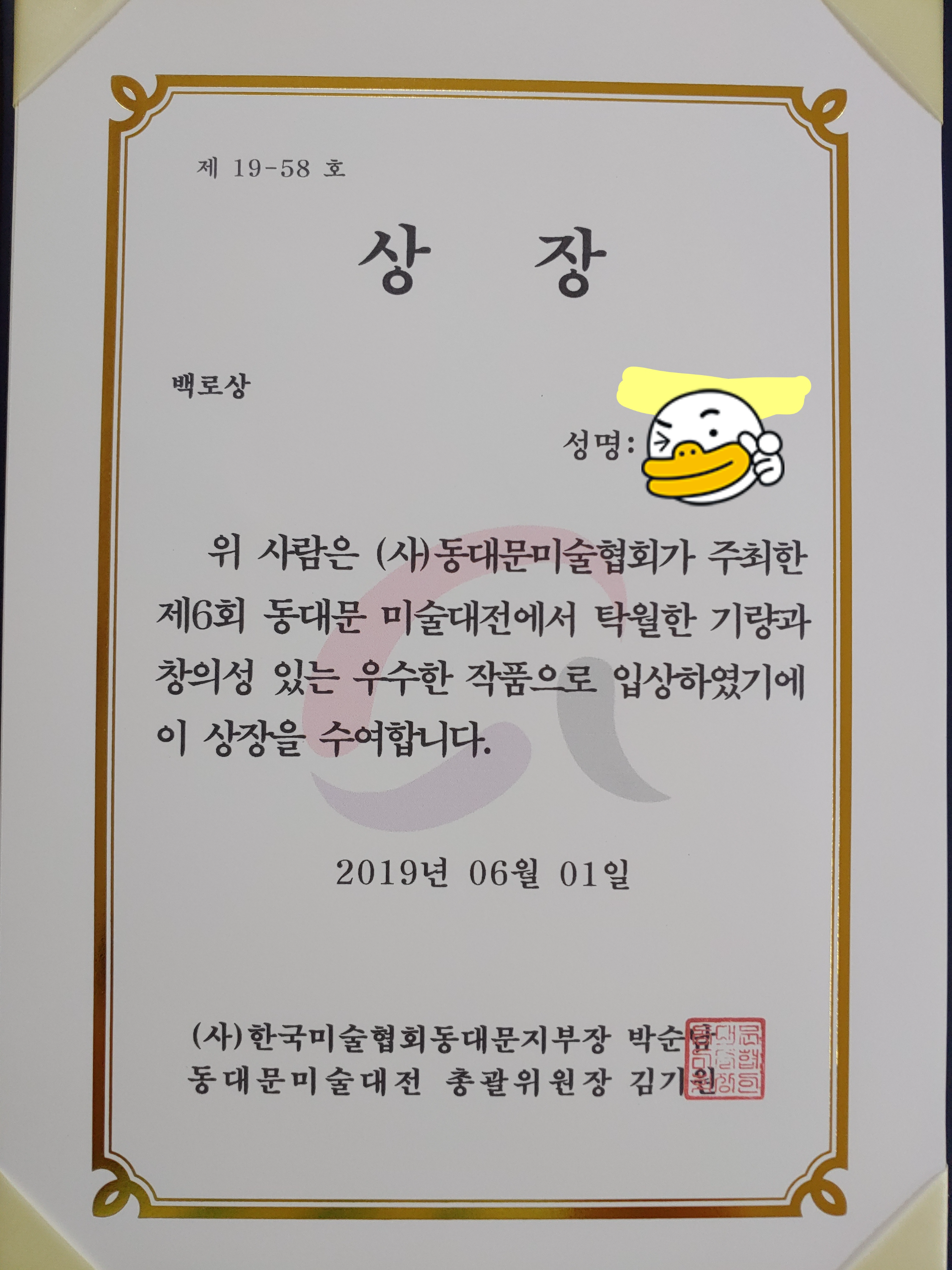 늘 어리광 부리는 어린아이로만 생각했는데 이렇게 떠~억 하니 상을 받아와 행복합니다.