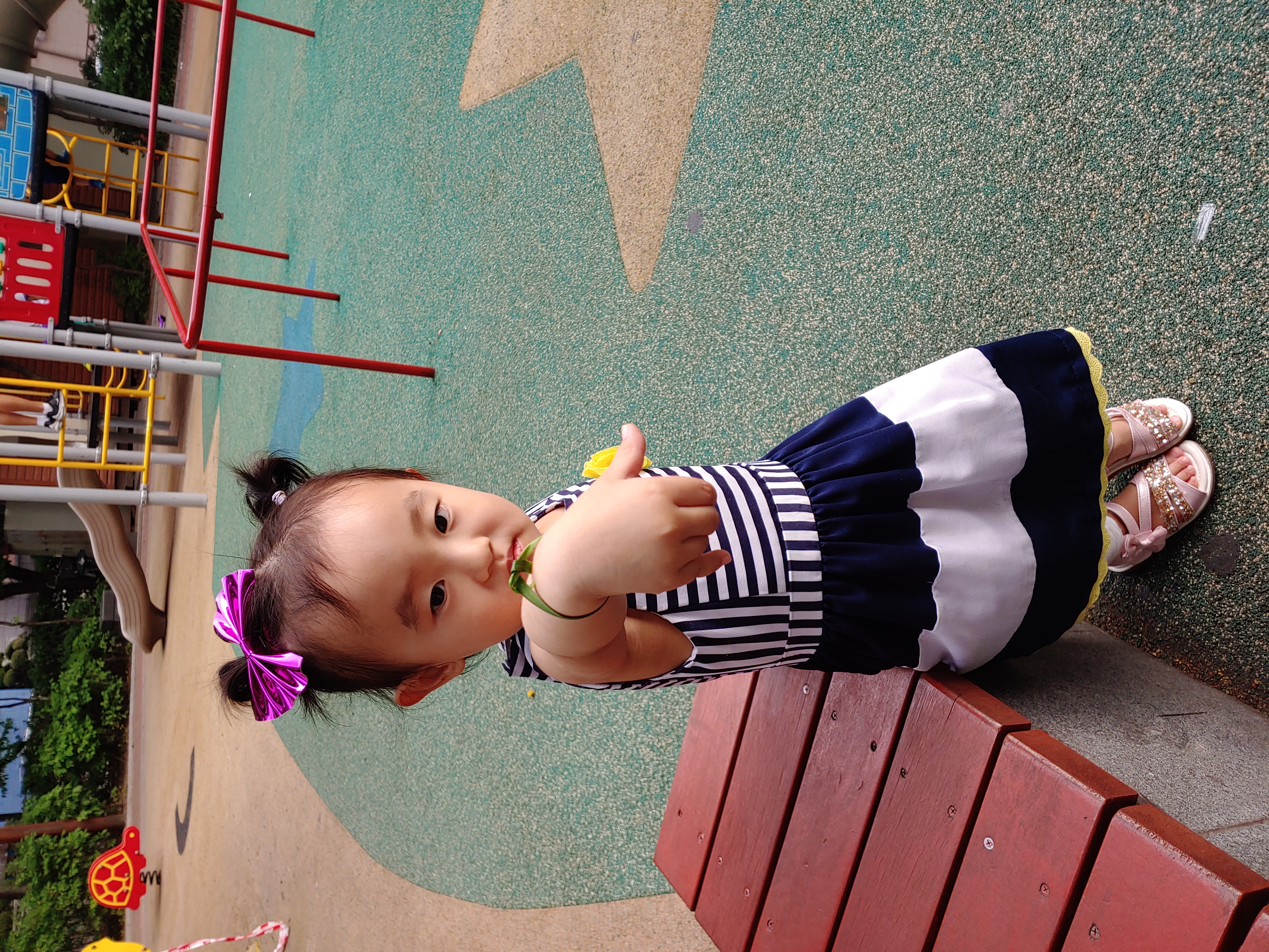 자랑스럽게 꽃잎팔찌를 내보이는 작은 공주