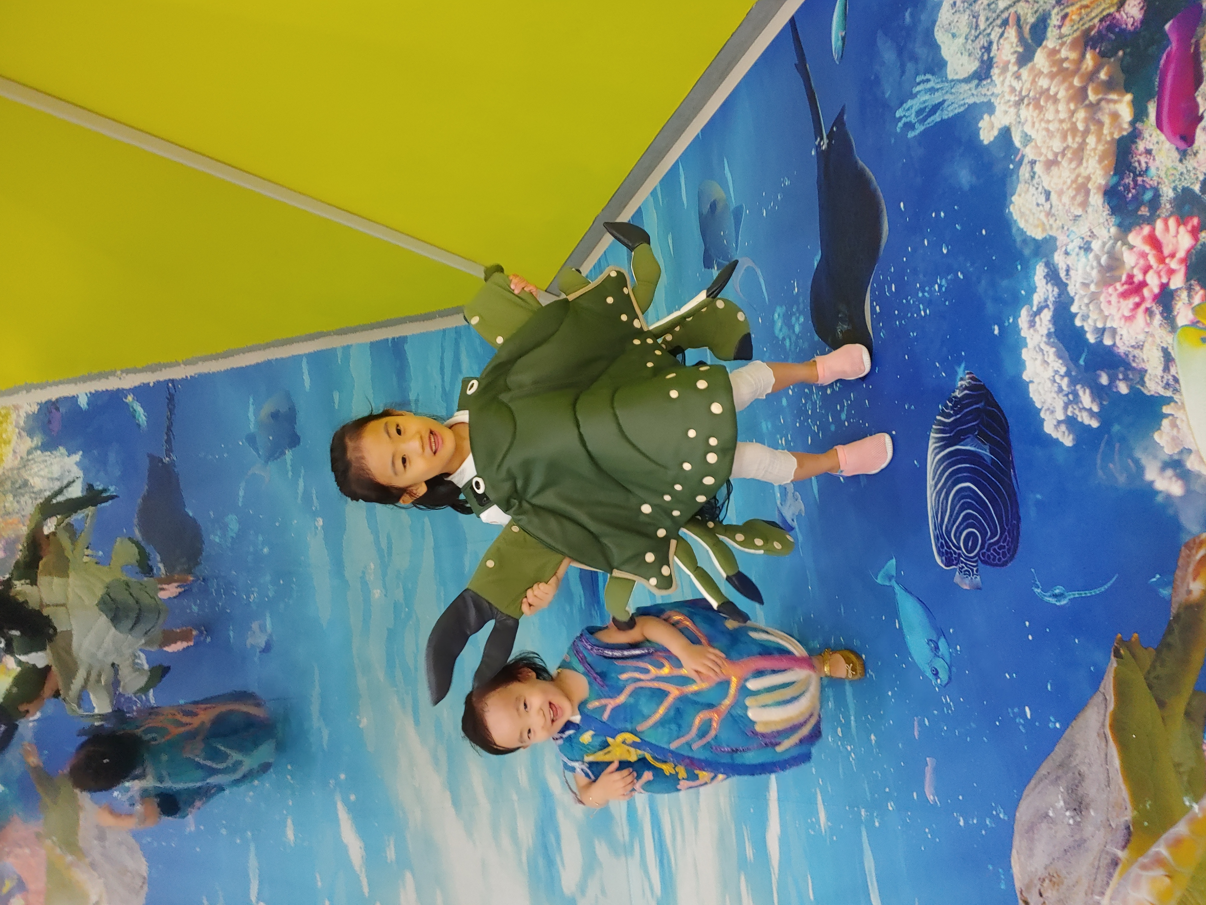 여러 종류의 물고기 옷을 입고 신난 공주들