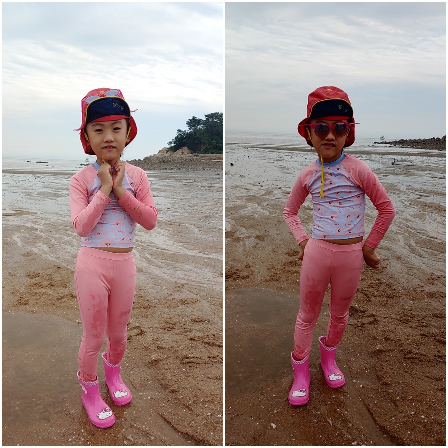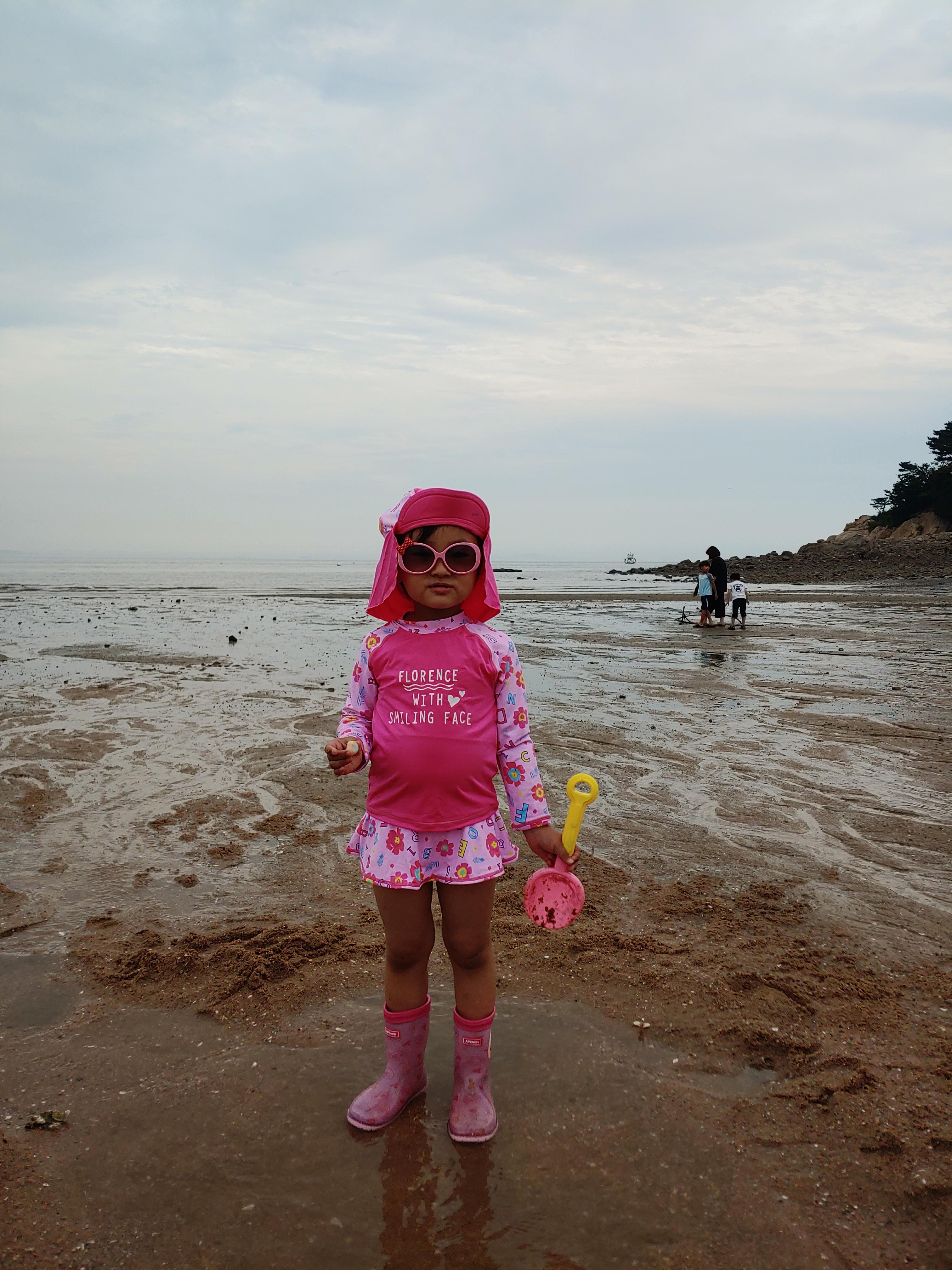 래시가드, 선글라스, 모래놀이 장난감 그리고 장화만 있으면 모래놀이 준비 끝!!
