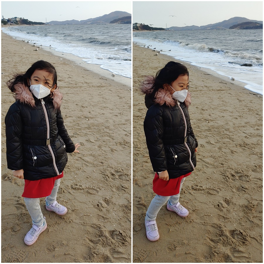 아직은 겨울 바닷바람이 차갑지만 모래놀이를 위해서라면 모자 쓰고 노는 것쯤은 감수할 수 있습니다.