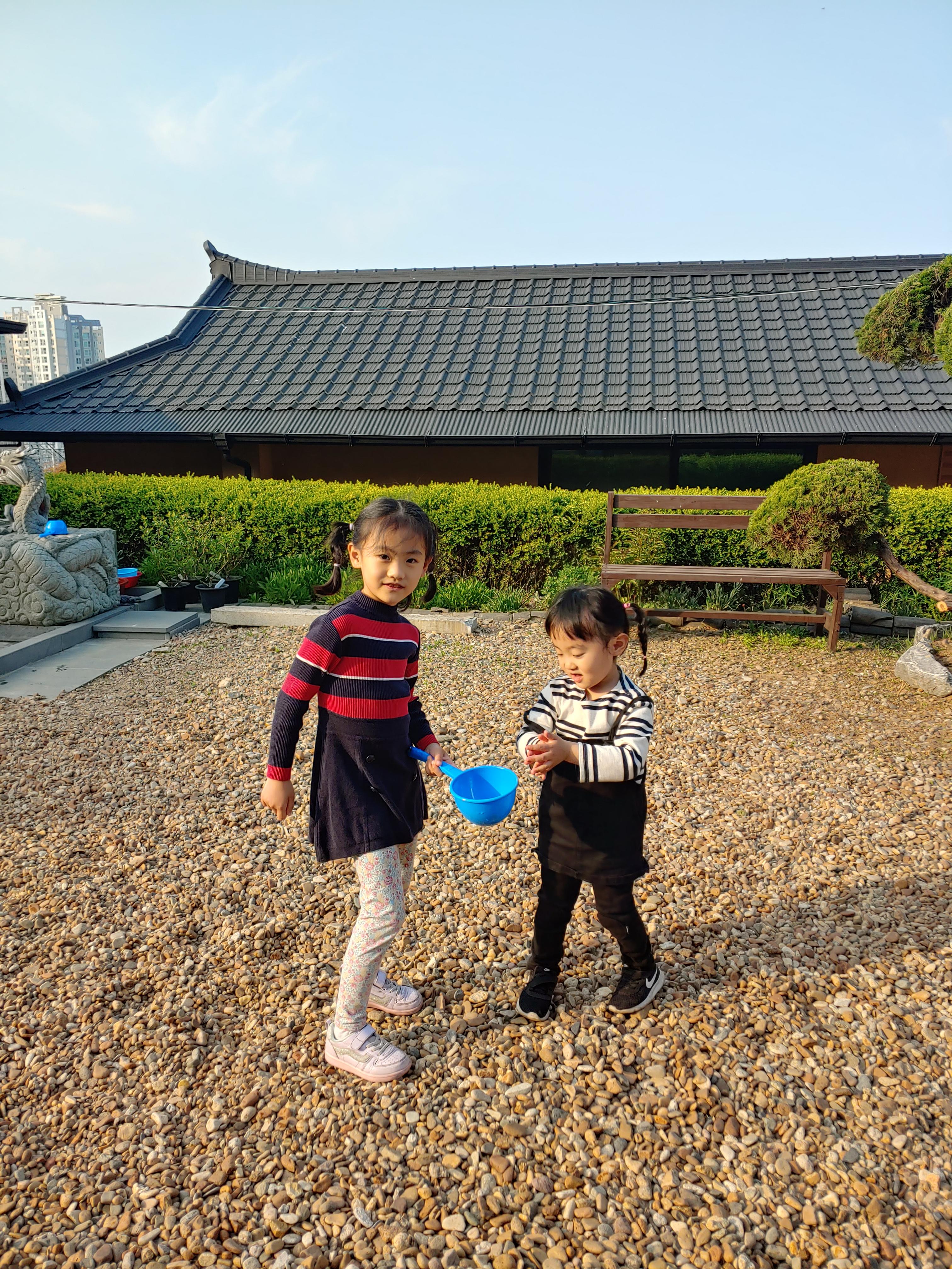 여름휴가 중 최고의 사진 입니다. 개구쟁이 큰공주와 이게 겨우 아기티를 벗어볼까? 하는 작은공주 바닥에 깔린 자갈돌을 이불처럼 또는 장난감처럼 신나게 갖고노는 그녀들 ♡ 자연속에 놓아