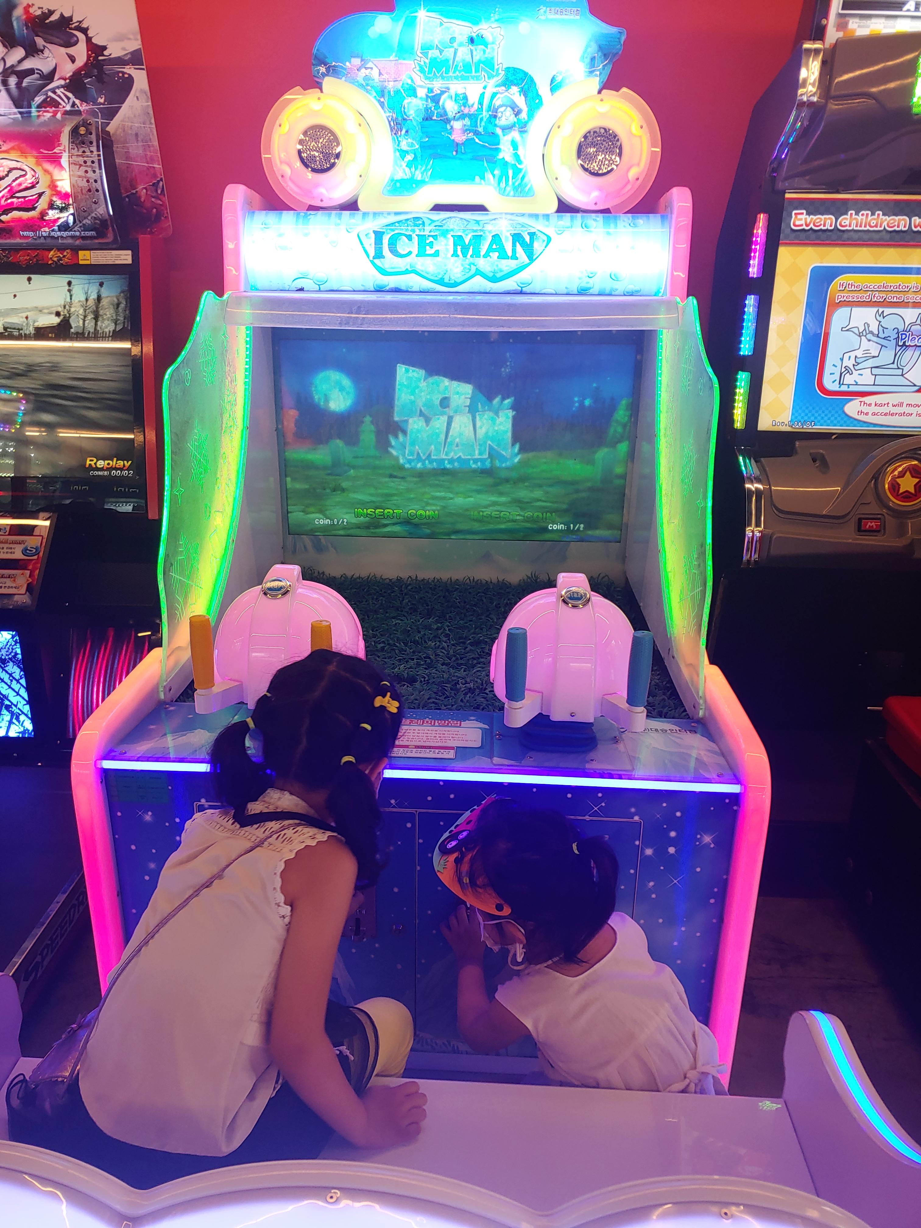 오락실 안 이곳저곳을 뛰어다니며 즐거운 체험을 하였으니 덥기도 했겠지요.