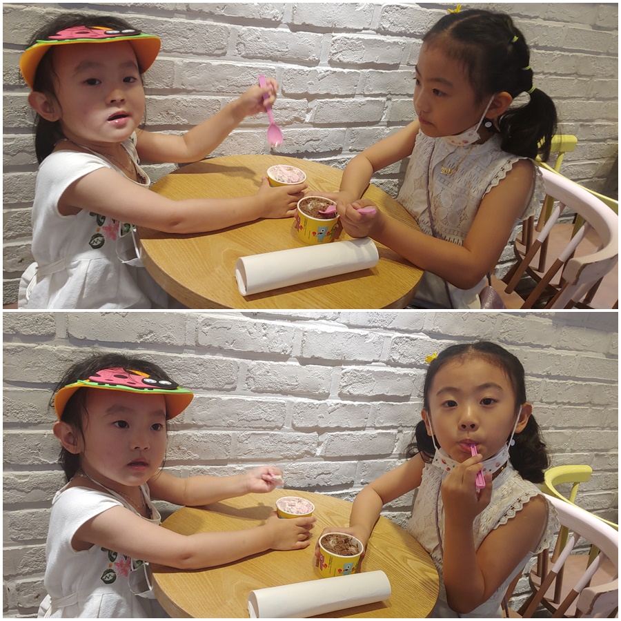 신나게 뛰어놀더니 더웠는지 아이스크림을 먹자고 하네요^^