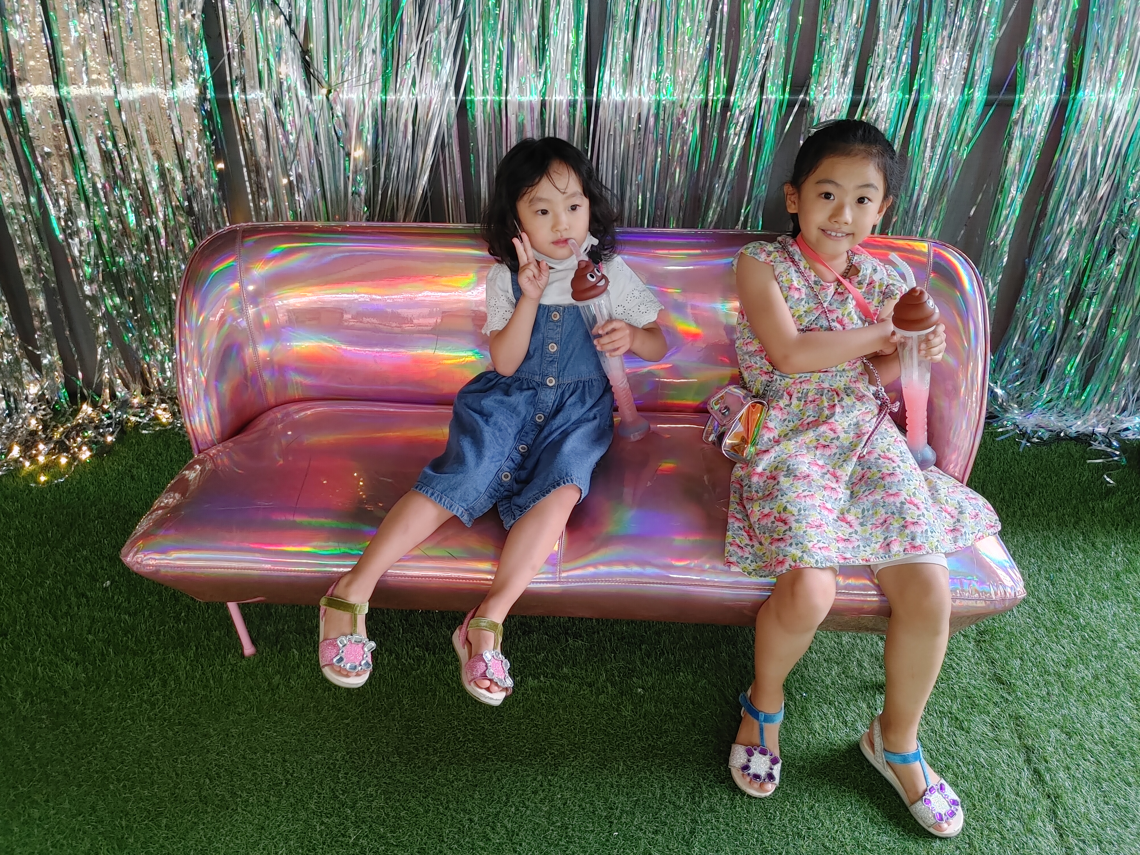 둘이 다정하게 앉아서 꾸미기 하는 공주들