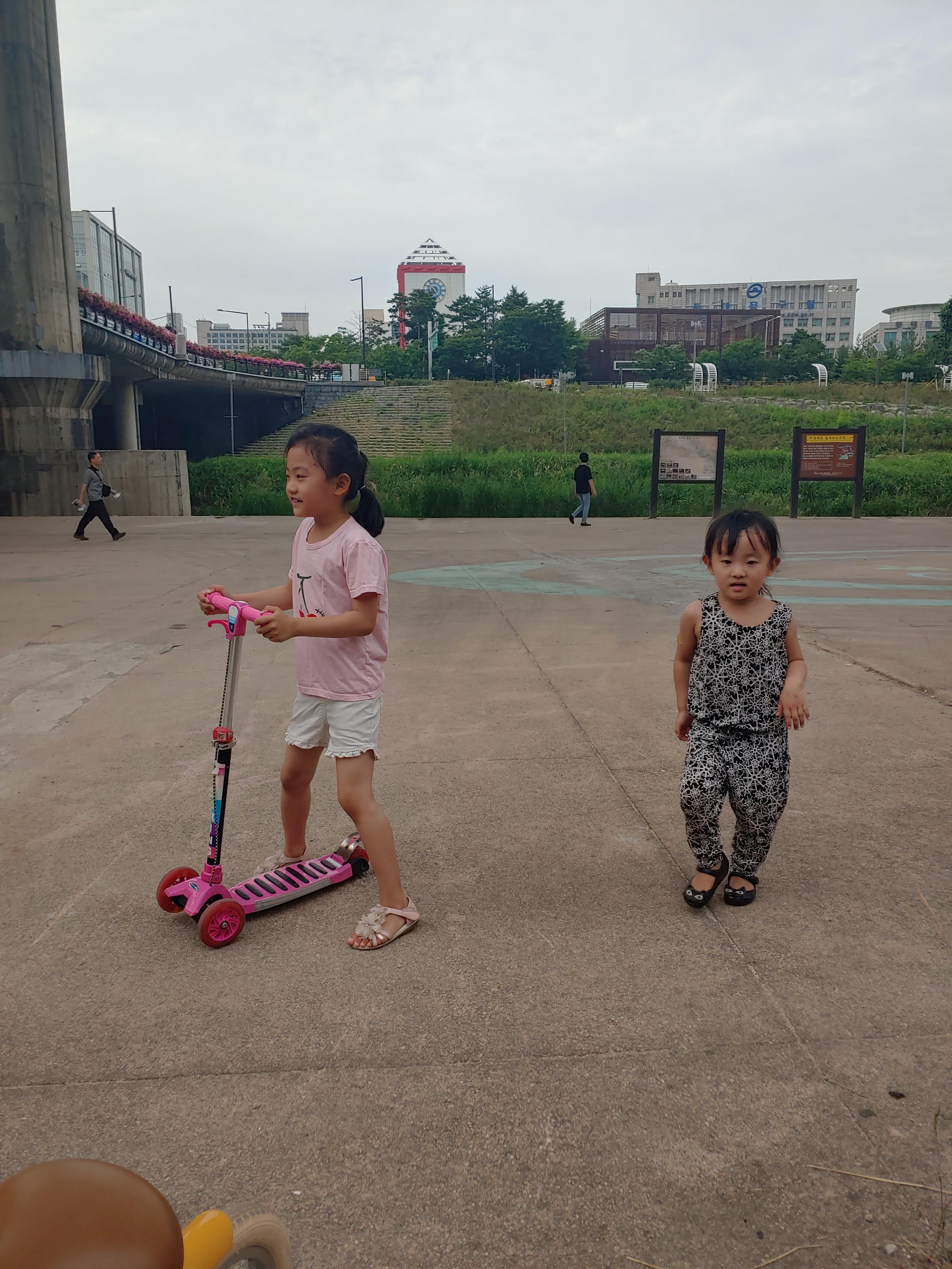 더운 여름 공주들과 함께 자전거와 킥보드를 타기 위해 개천으로 나왔어요 ♡