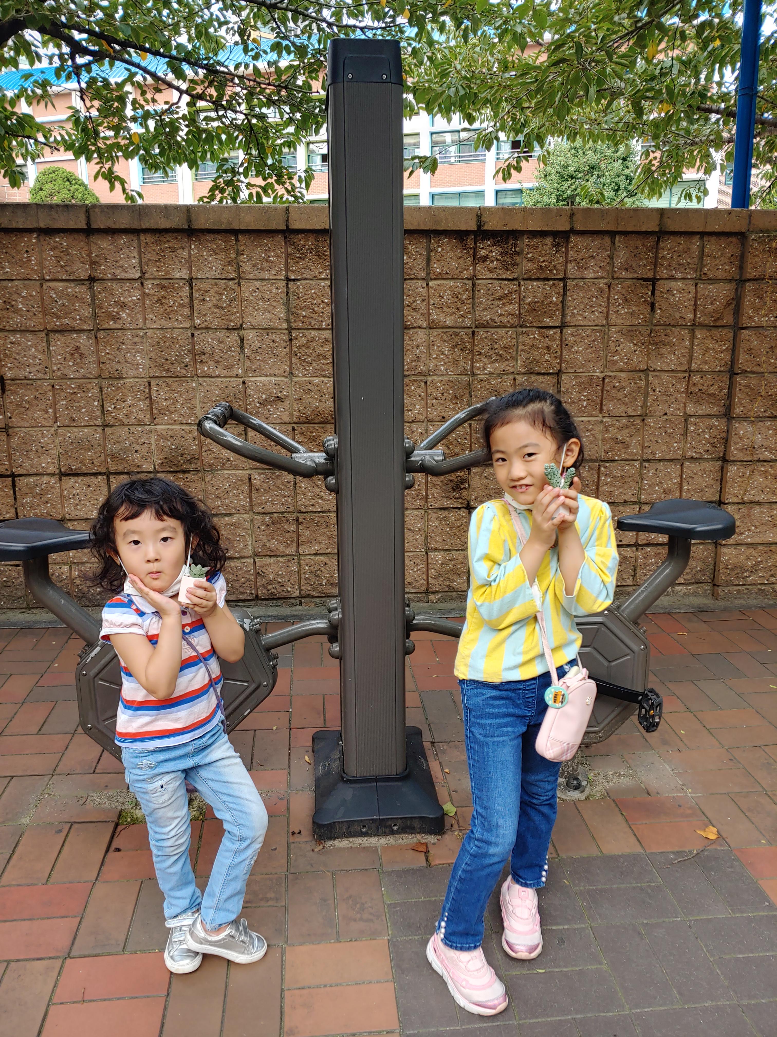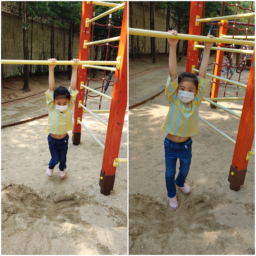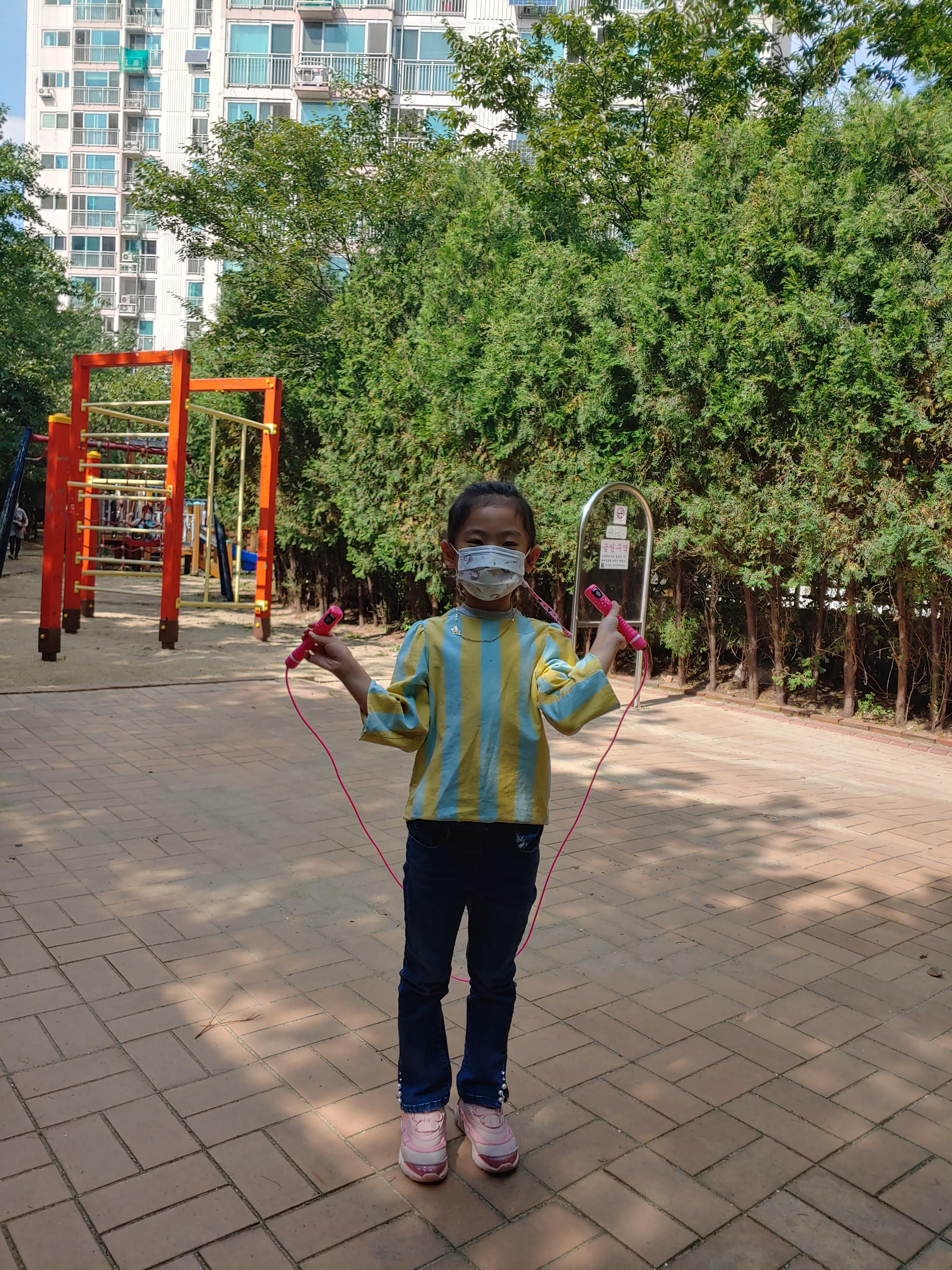 큰공주 줄넘기 연습을 위해 놀이터에 나왔어요.