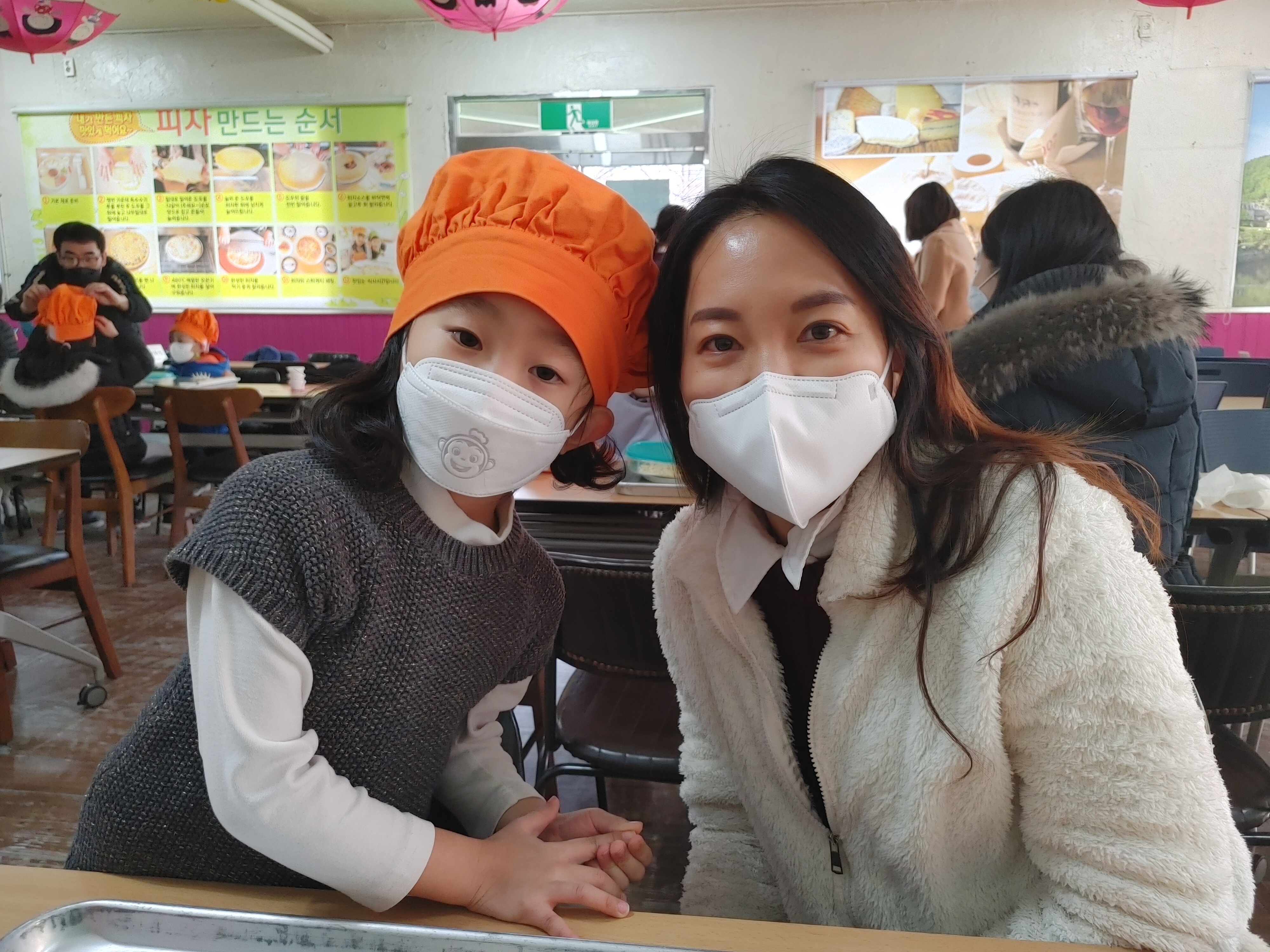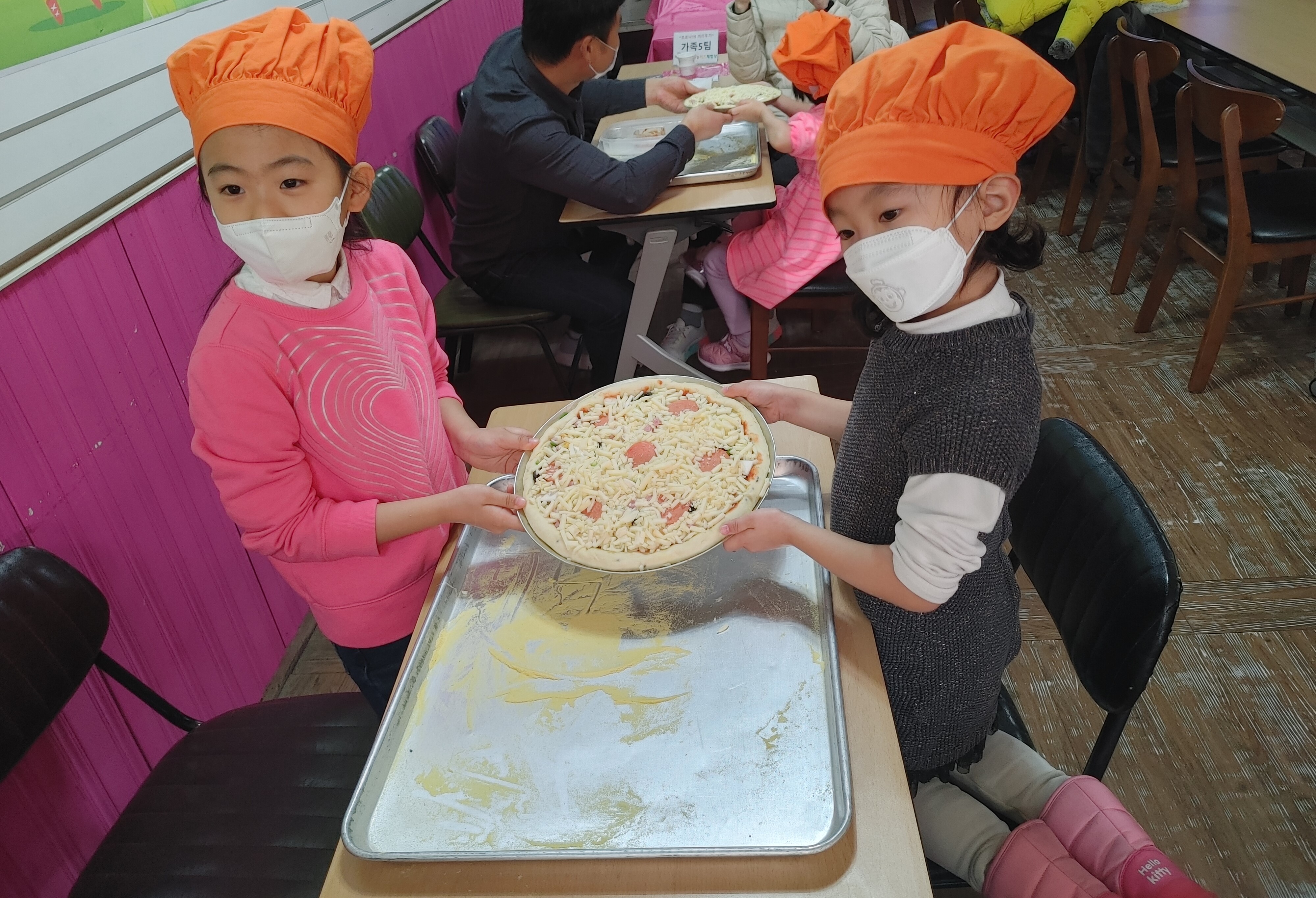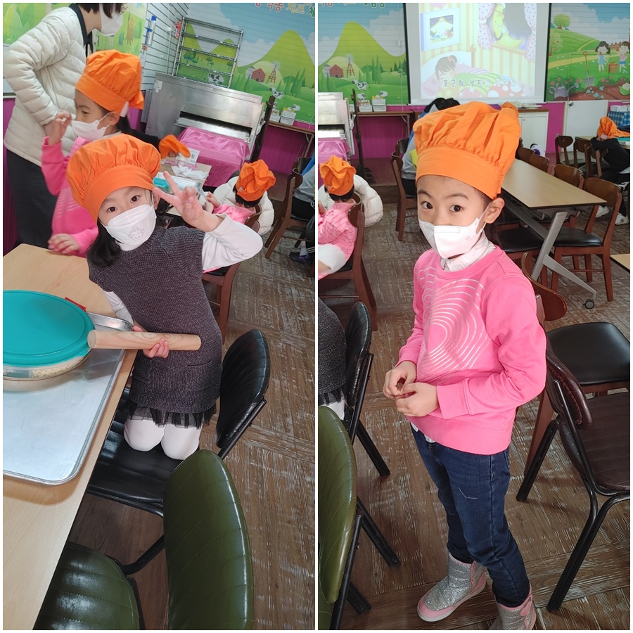 요리체험의 완성은 주방장 모자입니다.