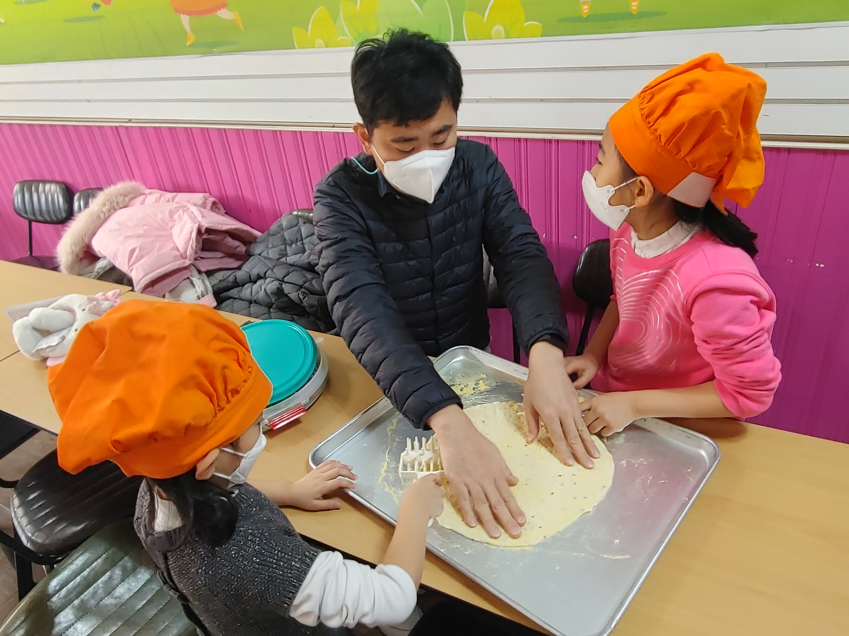 아빠와 함께 도우를 만들고