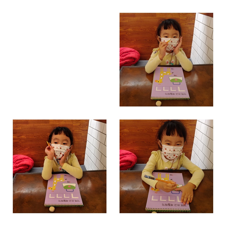 이제 한글공부를 시작해 문제집을 풀며 기다립니다.