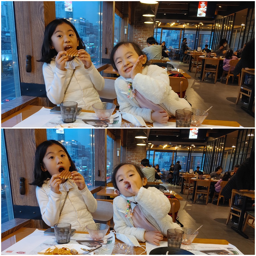 신나게 야외놀이를 하고 빕스에서 저녁을 먹었습니다.
