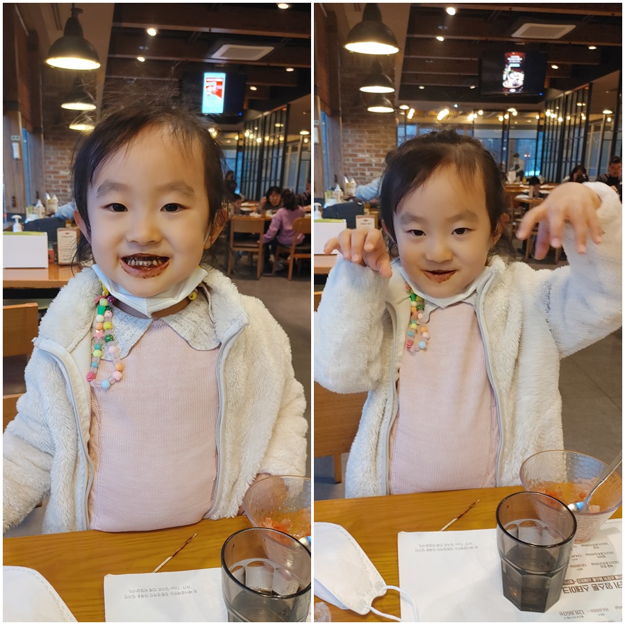 초콜렛이 입에 잔뜩 묻어 무서운 작은공주