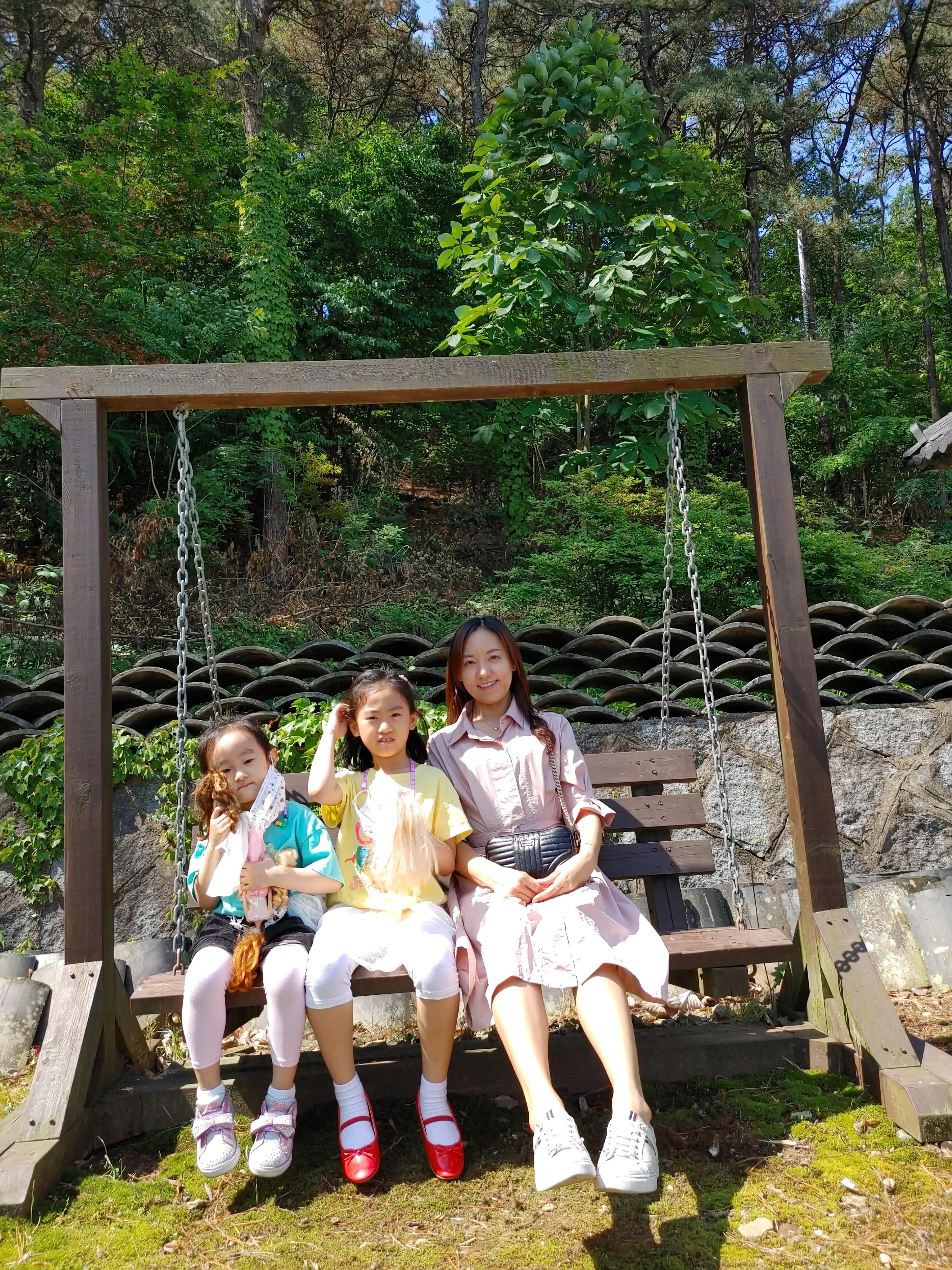 흔들 그네에서 엄마와도 사진을 찍어 봅니다.