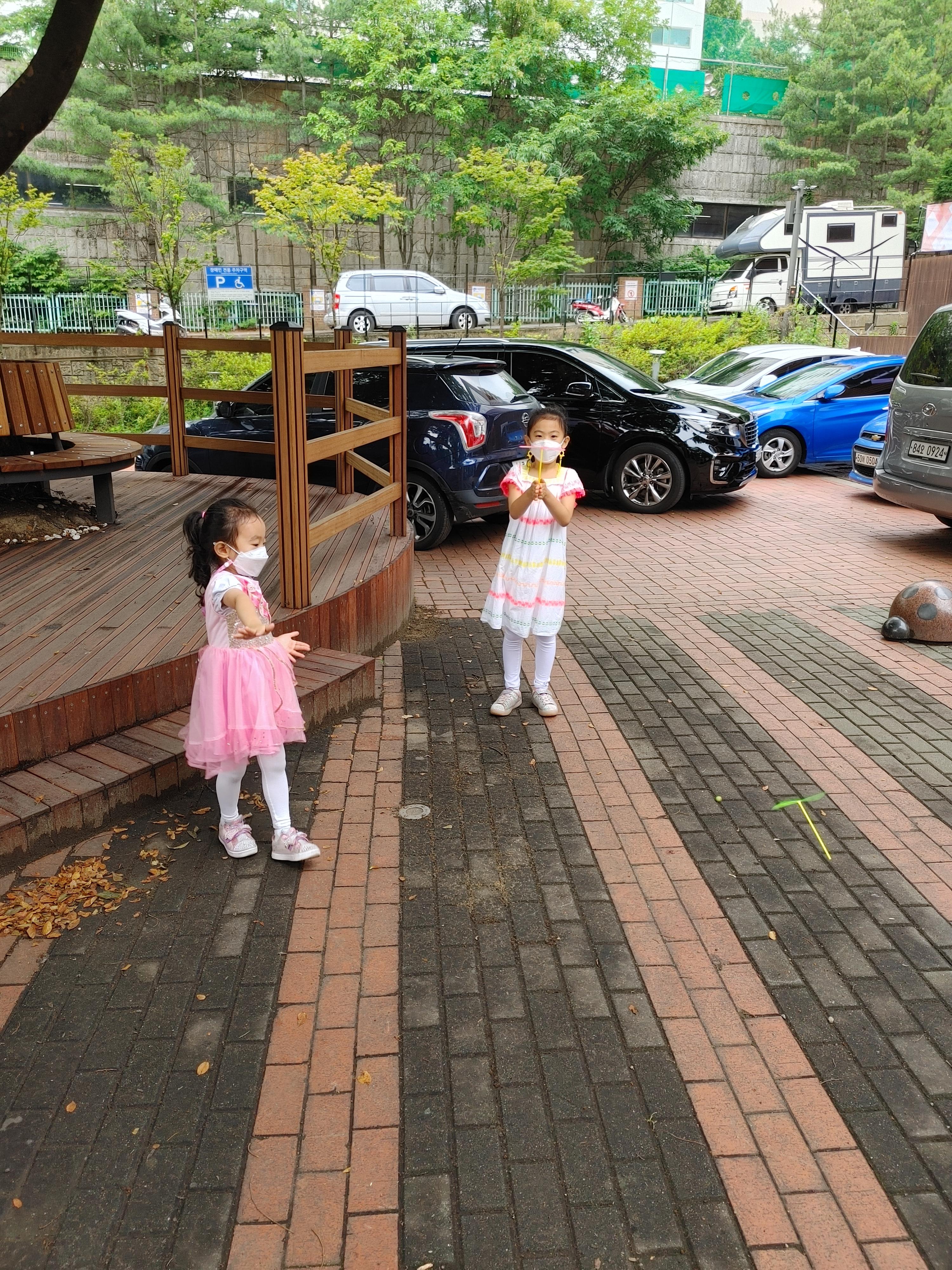 공원에서 바깥놀이를 하고 있는 공주들 입니다.
