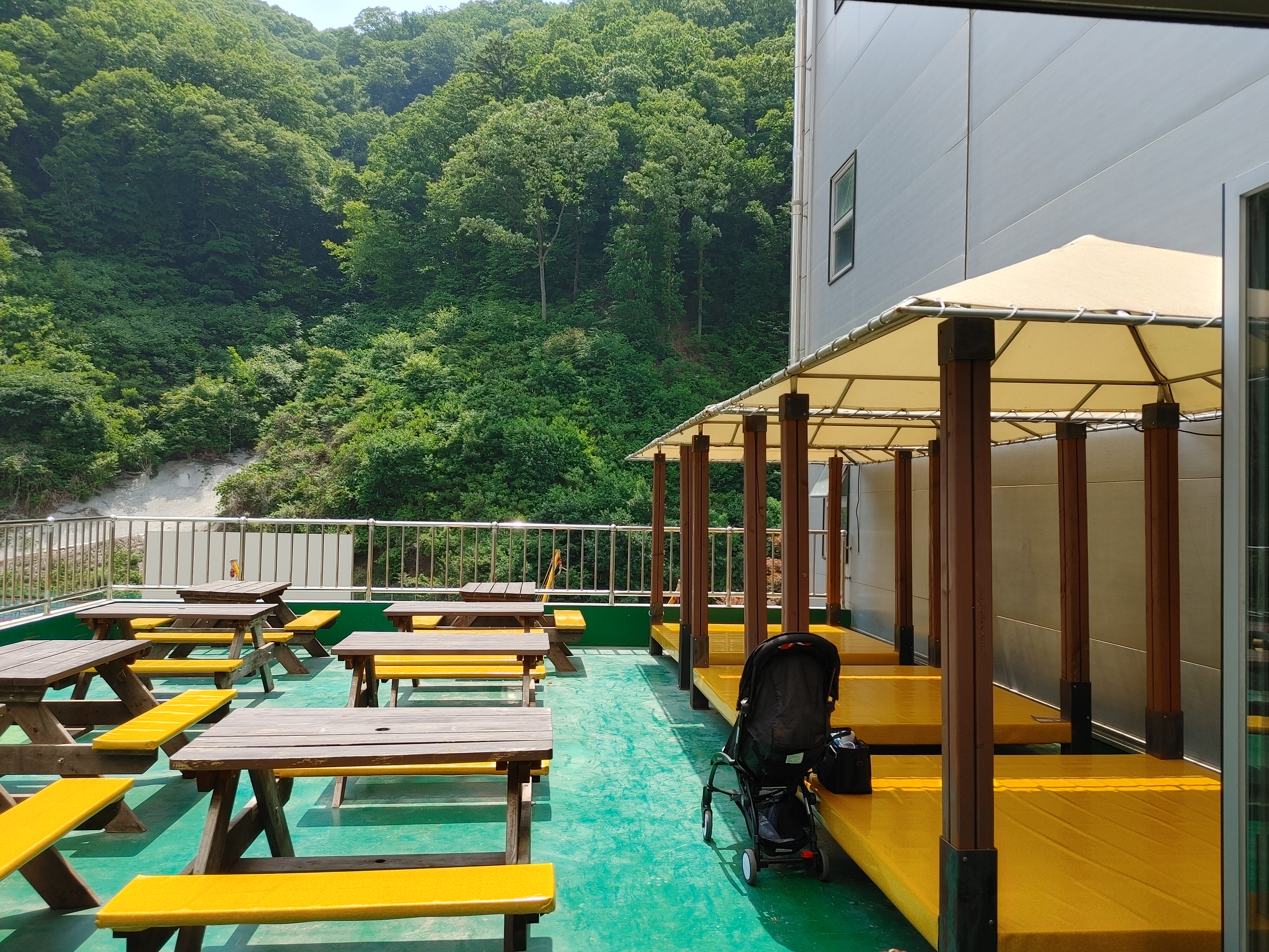 보호자가 앉을 수 있는 테이블이 실내 실외 모두 있어서 취향에 맞게 선택해 자리 잡고 앉으면 됩니다^^