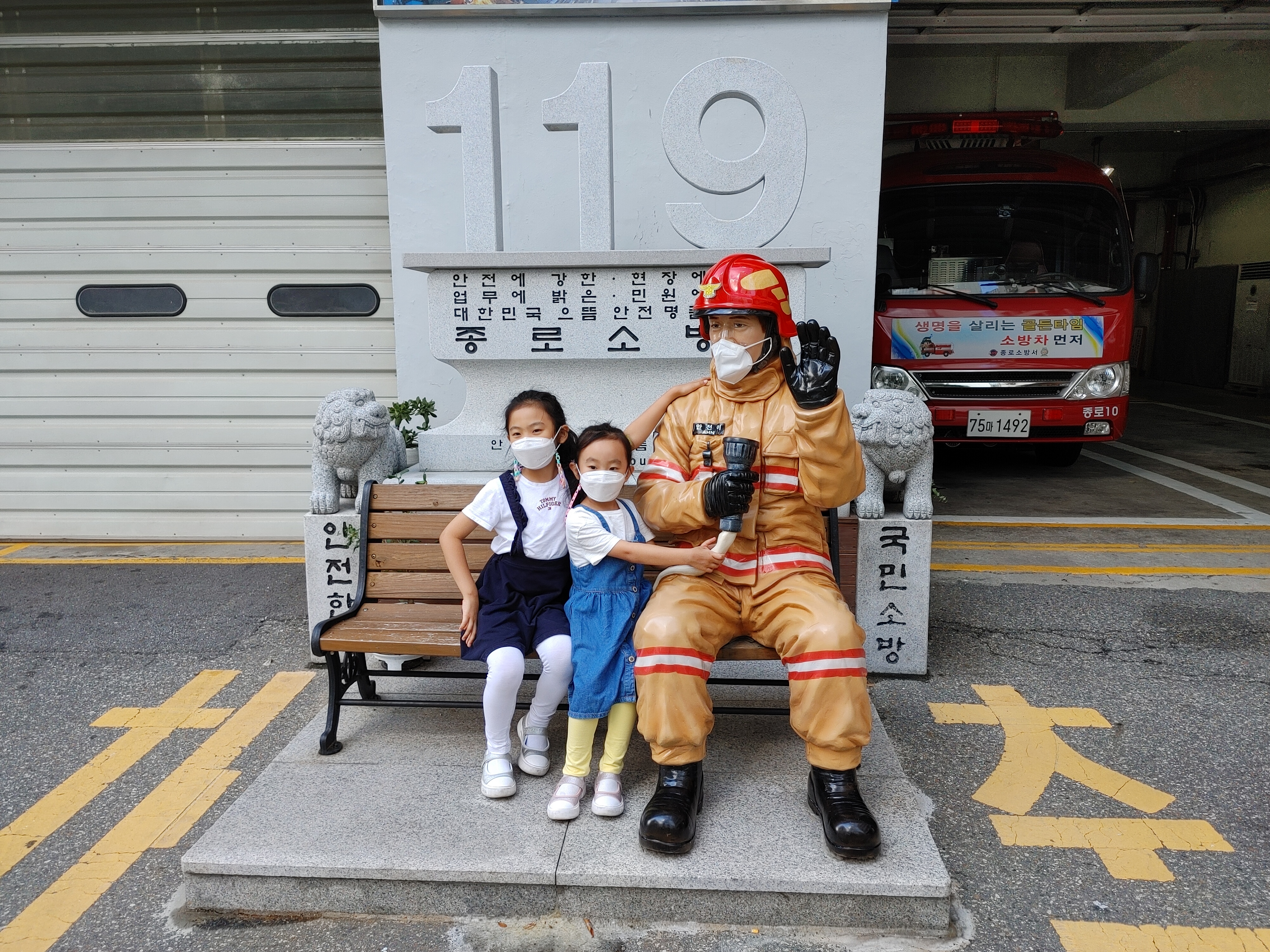 고궁을 나와 종로소방서 앞에서 기념촬영을 해 봅니다.