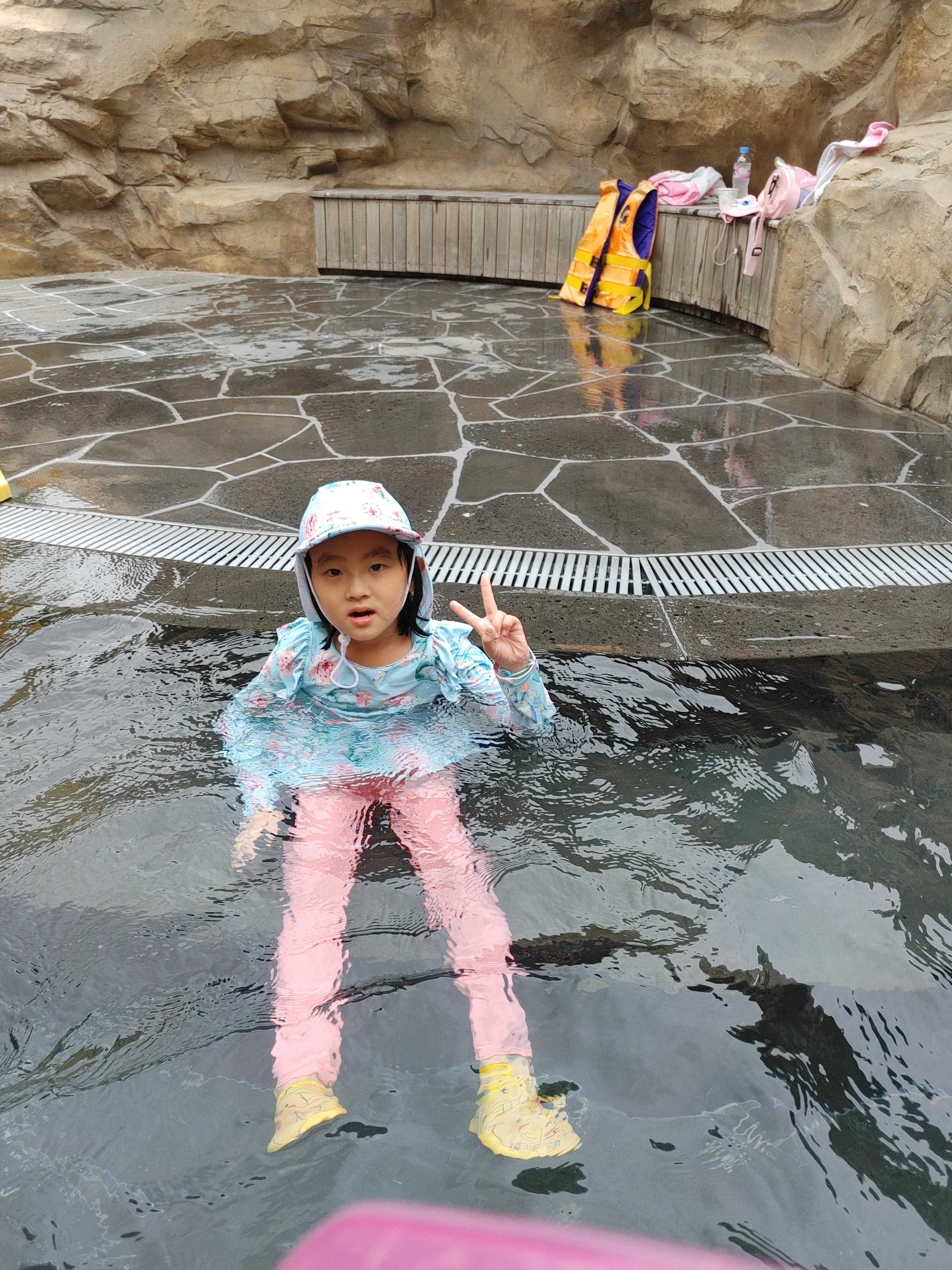 따뜻한 물이 있어 오랫동안 물놀이할 수 있었습니다.