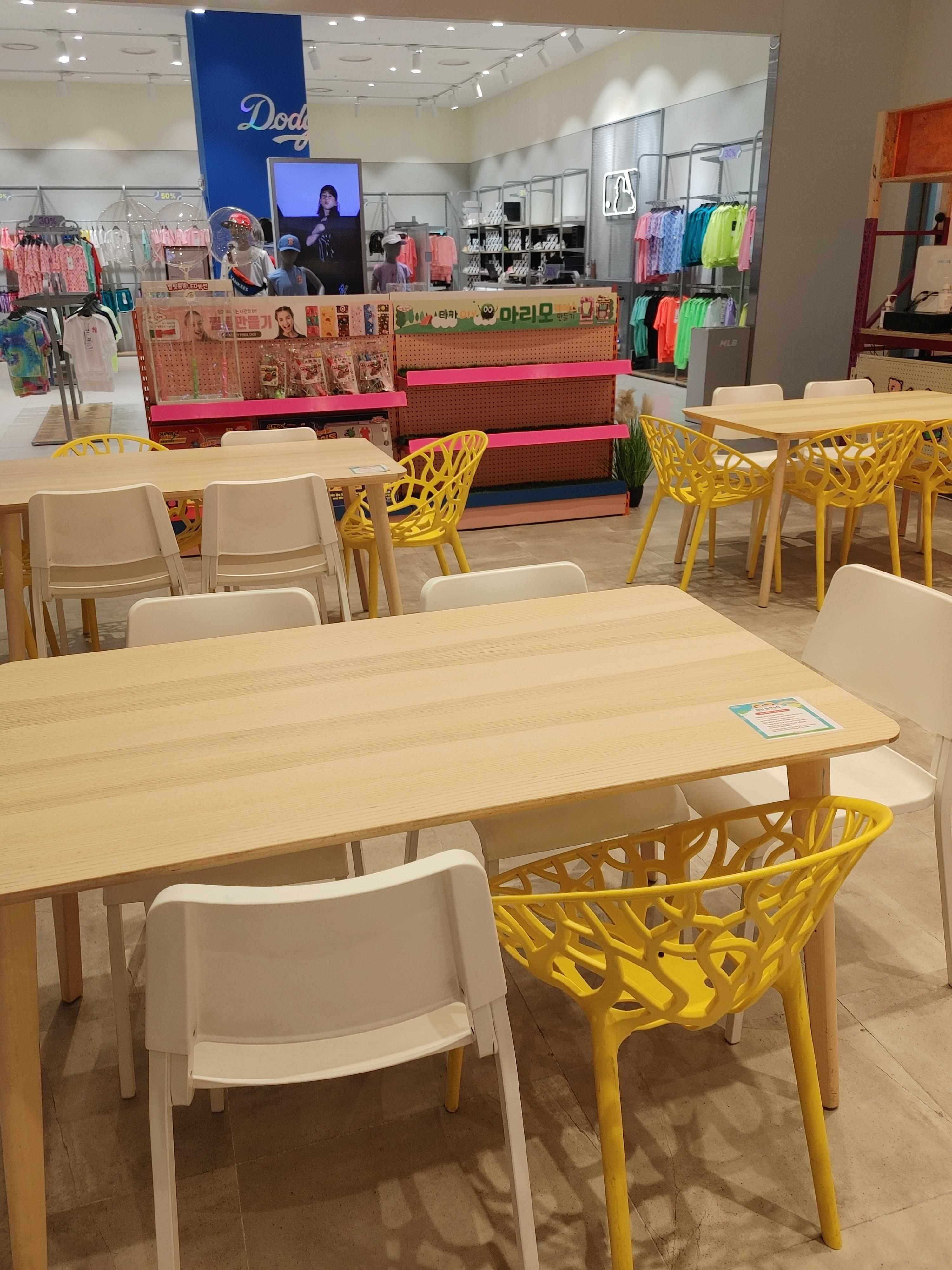 가족이 함께 앉아 체험할 수 있는 테이블과 의자가 있었습니다.