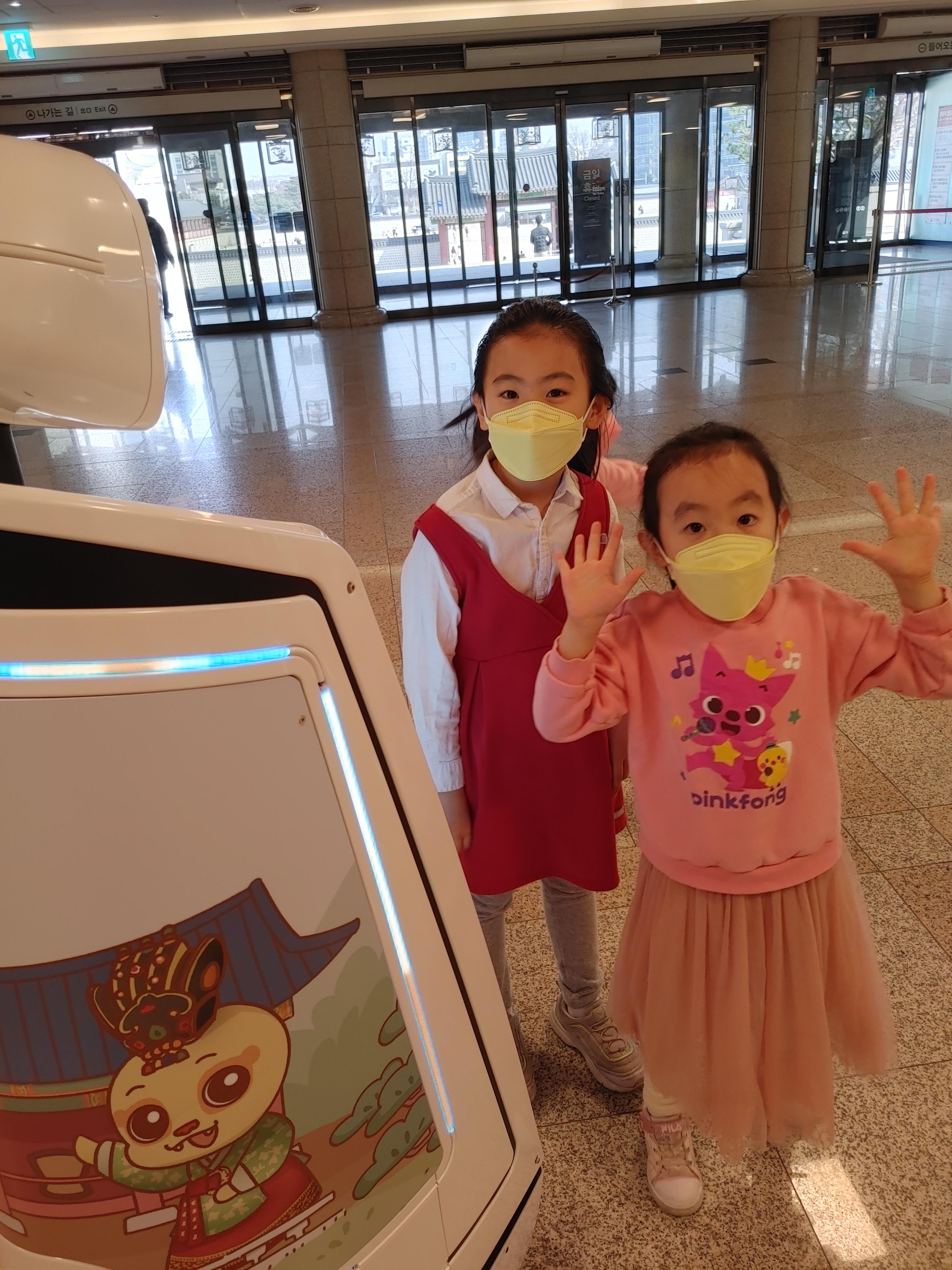 입구에 들어서자마자 방문객을 반겨주는 로봇이 있었어요.