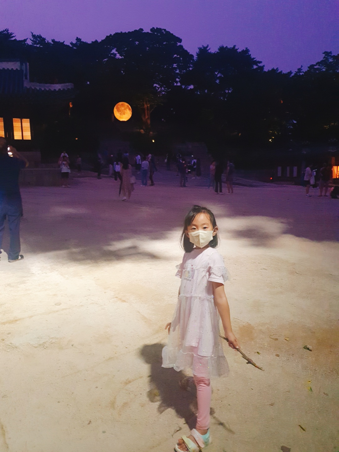 추석 연휴 기간 창경궁 야간 관람 시간대 풍기대 주변에 커다란 보름달 모형이 설치되었는데요.