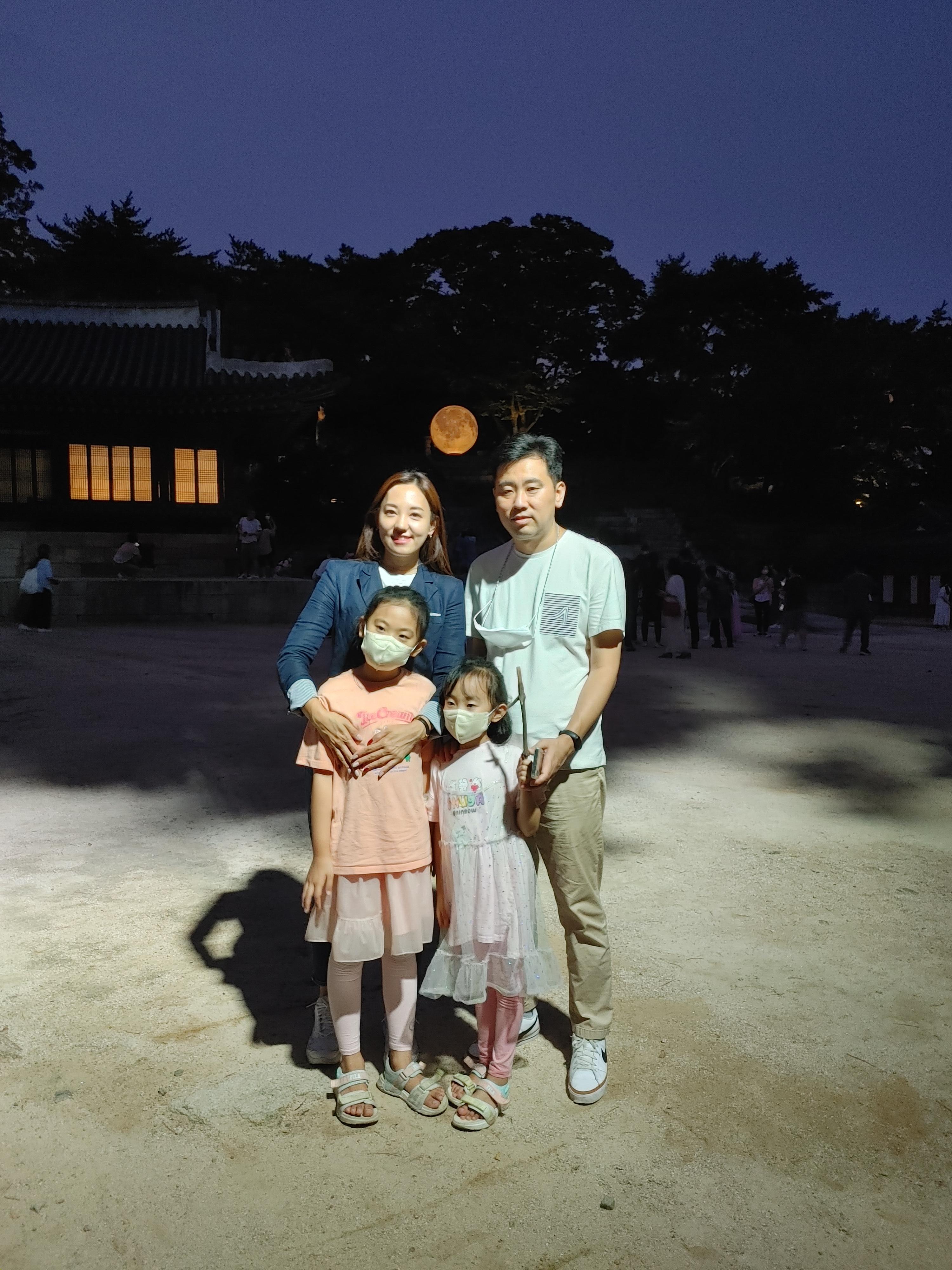 보름달을 중아에 두고 가족사진도 한 장 찍어 봅니다.
