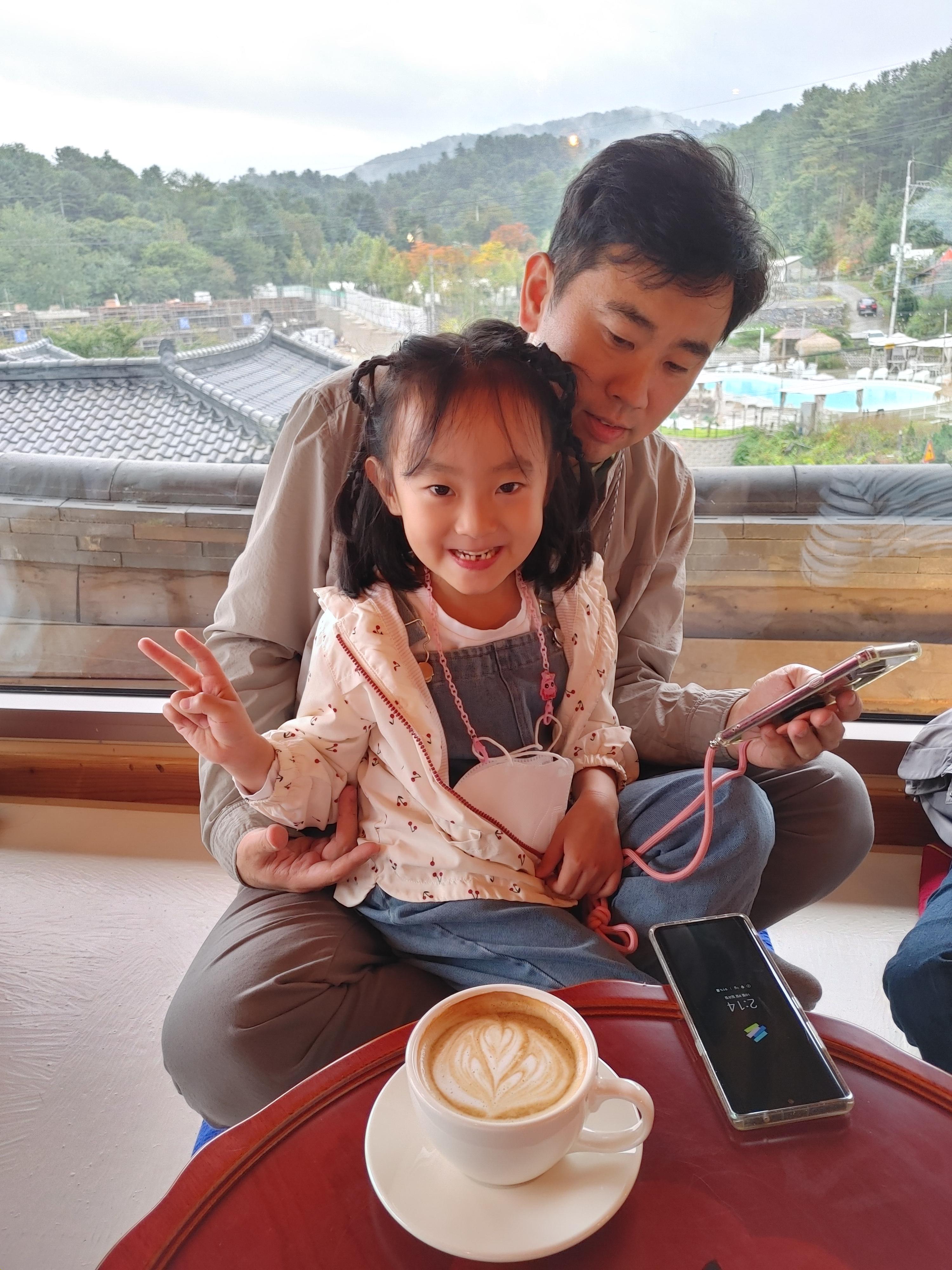 아빠 무릎 위에서 신이 난 둘째 공주님