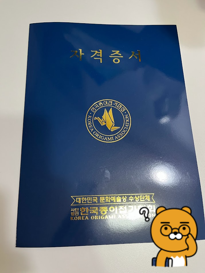 큰 공주의 종이접기 3급 자격증입니다.
