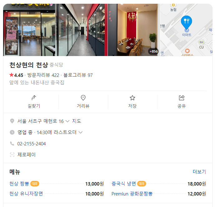 박물관을 모두 관람한 후 식사를 위해 "천상"에 다녀왔습니다.