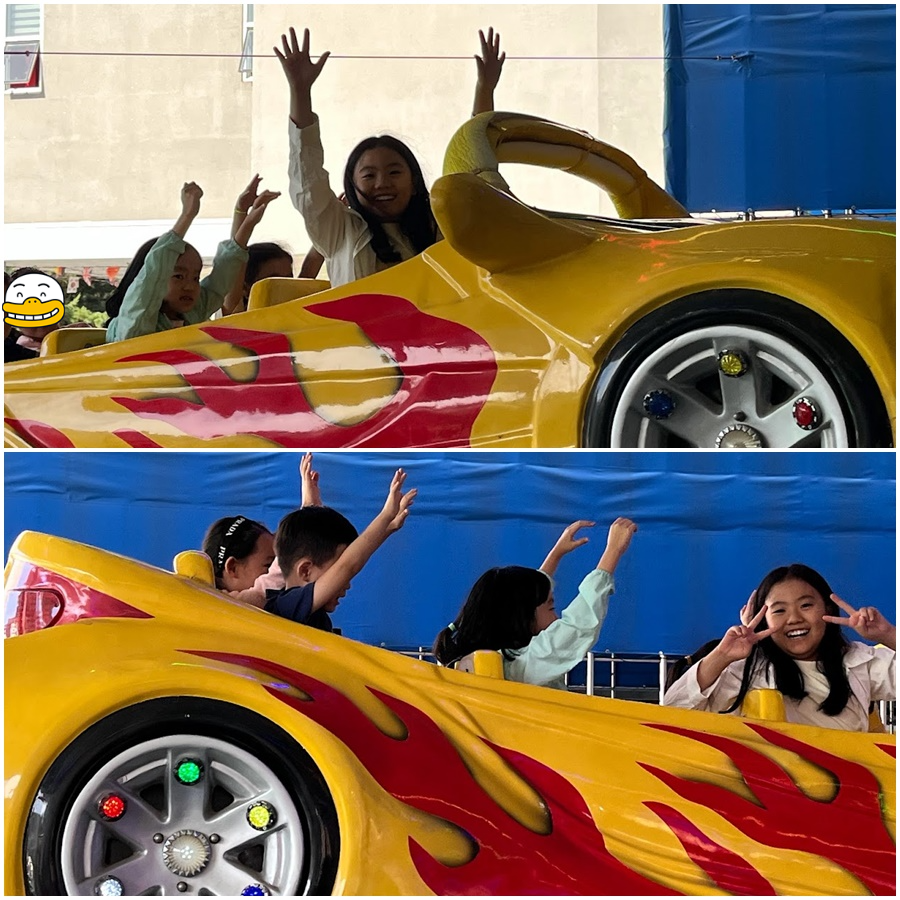 지난번과 다르게 이번에는 실외 놀이기구를 탔습니다.